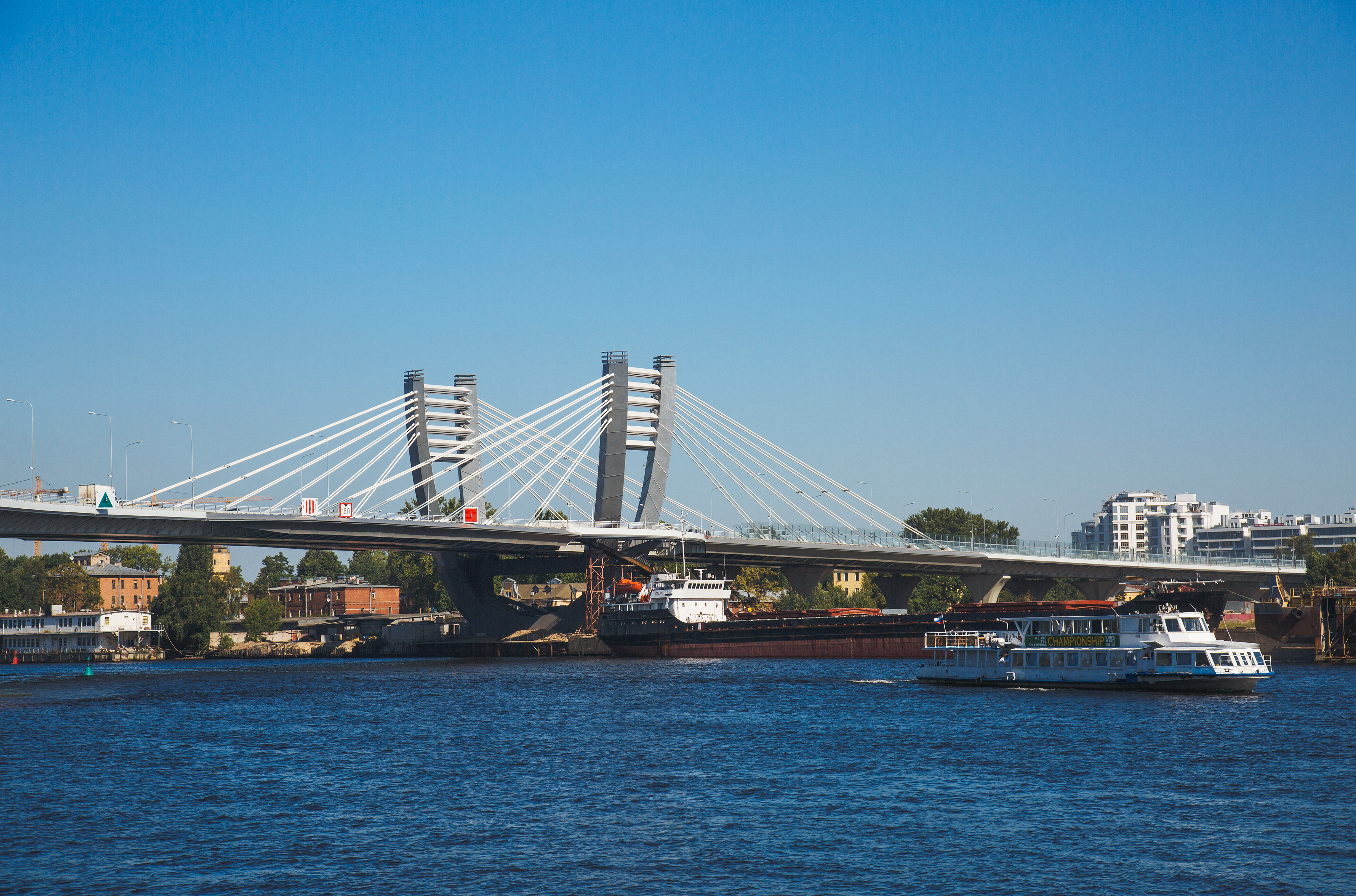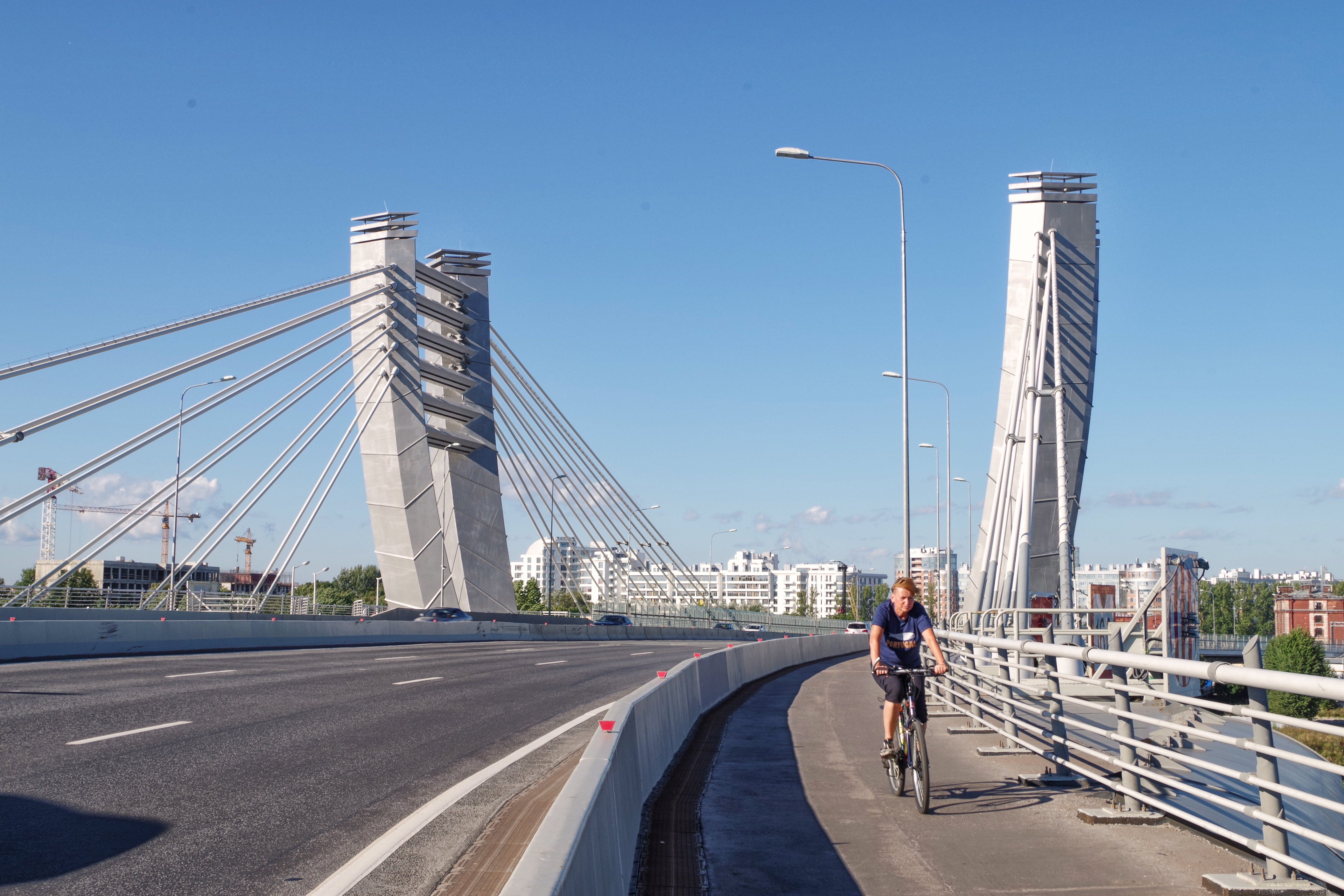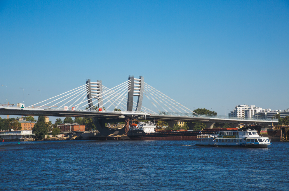 Для справки: мост Бетанкура – неразводной вантовый мост через Малую Неву, который проходит в районе острова Серный и соединяет остров Декабристов с Петровским островом. Сооружение стало одним из путей объезда центра Санкт‑Петербурга, а вместе с ЗСД и набережной Макарова – частью кратчайшего маршрута от аэропорта Пулково до стадиона «Газпром Арена».