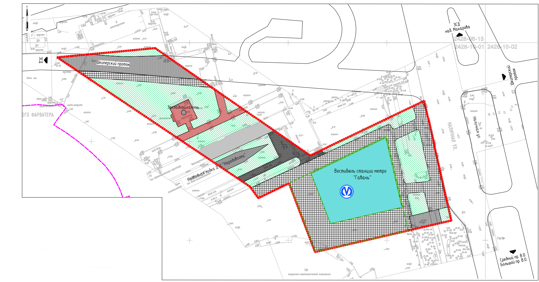 Станцию планируется построить на участке с юго-восточной стороны здания по Шкиперскому протоку, 12Н и с северо-восточной стороны здания по Большому проспекту В.О., 103К.