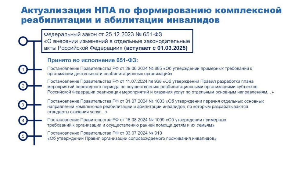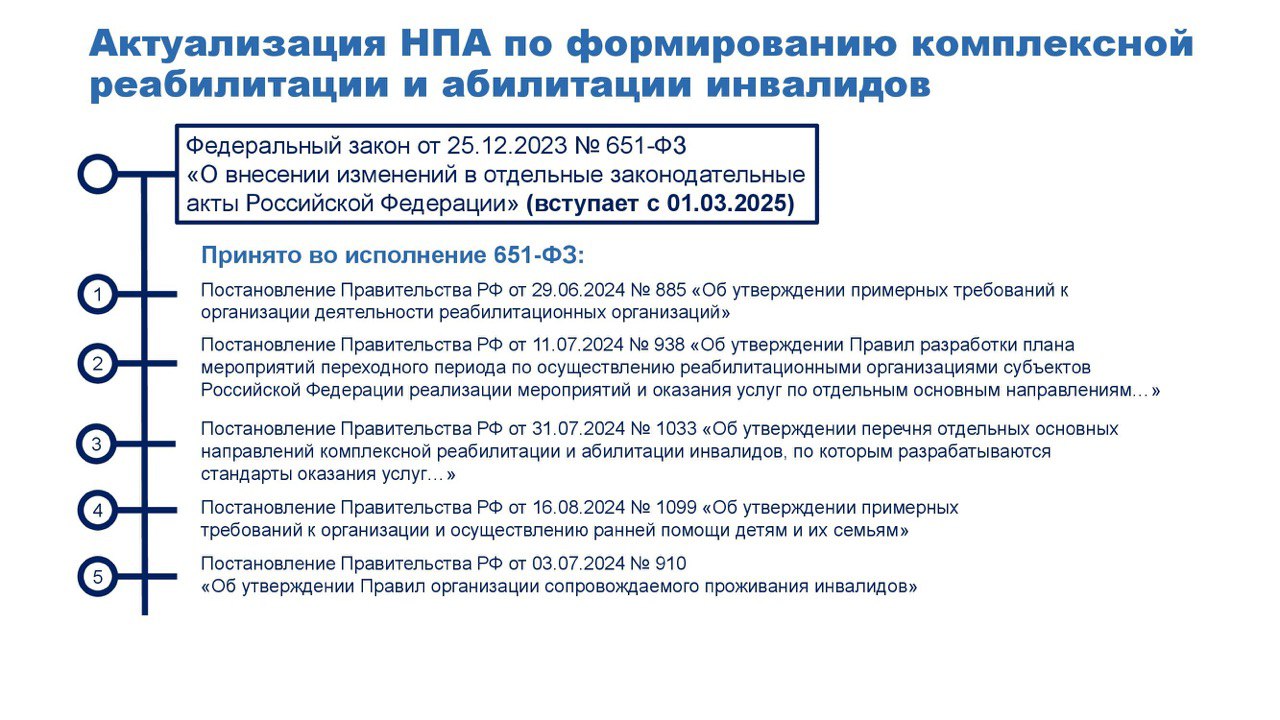 Вице-губернатор обратила внимание на то, что с 1 марта 2025 года вступает в силу новое федеральное законодательство в части развития системы комплексной реабилитации и абилитации инвалидов и детей-инвалидов. О проводимой подготовительной работе в связи с предстоящими изменениями подробно представителям общественных организаций.