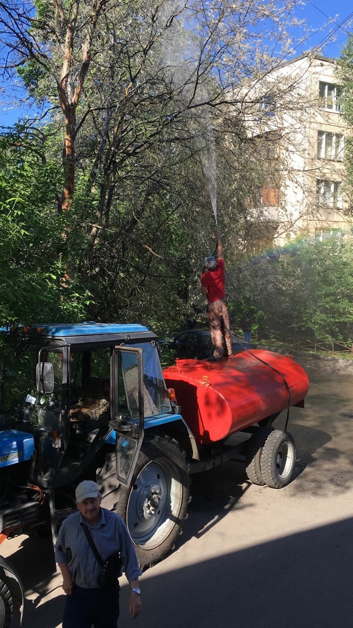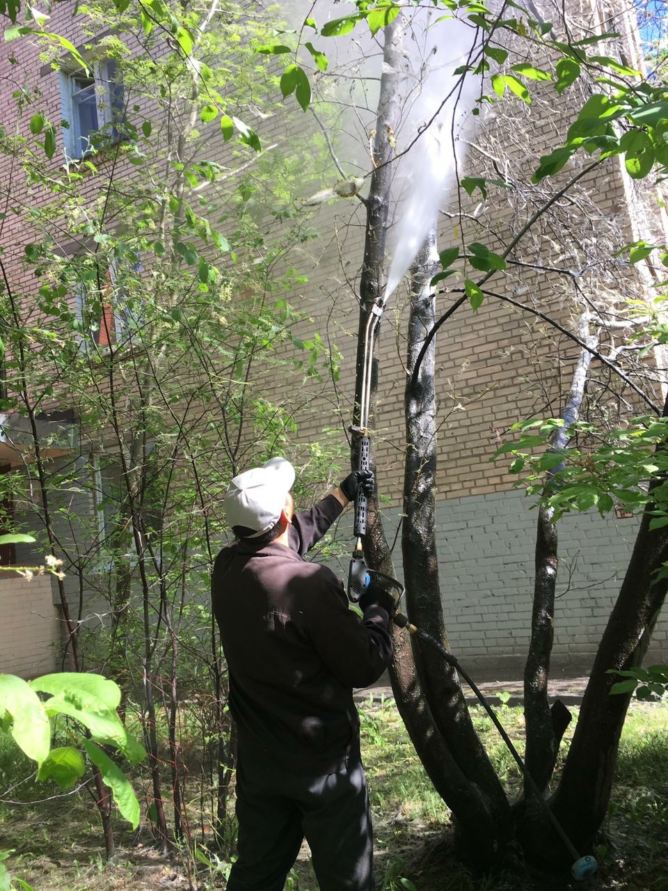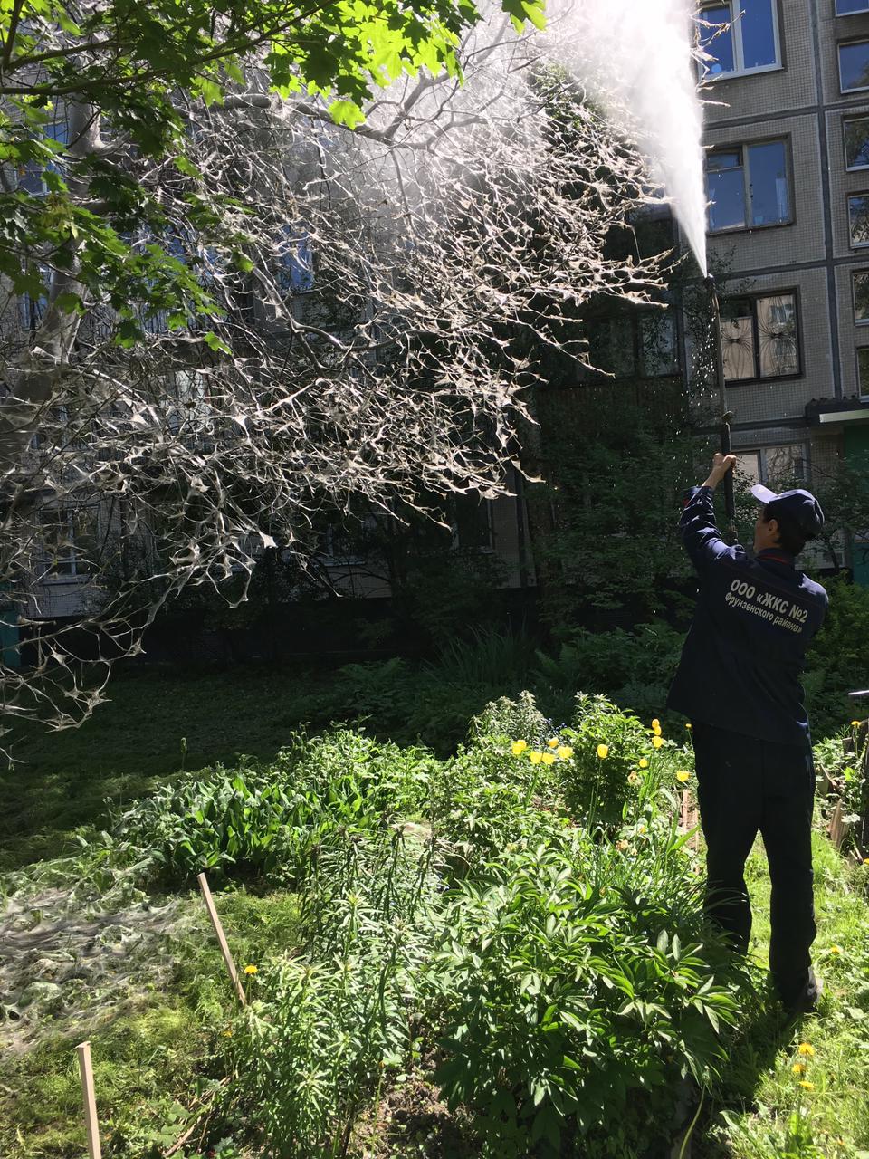 С понедельника, 28.05.2018 специалисты коммунальных организаций, управляющих компаний, муниципальных образований Фрунзенского района проводят обработку деревьев и кустарников от насекомых-вредителей на улицах и придомовых территориях.