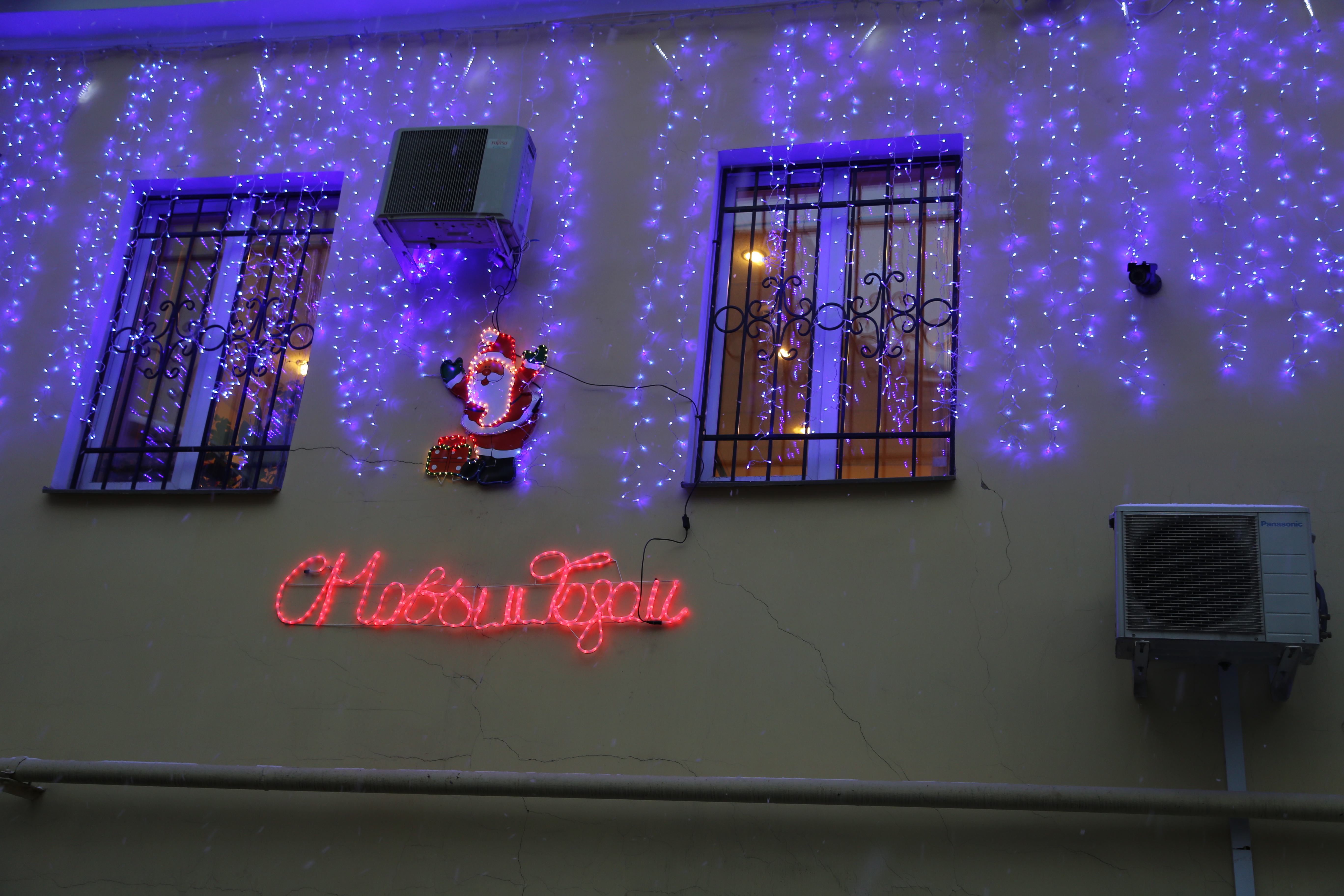 Здание администрации оформлено светодиодными гирляндами теплого и холодного белого цвета, бахромой светодиодной теплого белого цвета, звездами «Сириус» и светодиодной надписью «С Новым годом и Рождеством». Совместно с празднично украшенной елью и декоративными световыми элементами «Веер» привлекают большое количество прохожих.