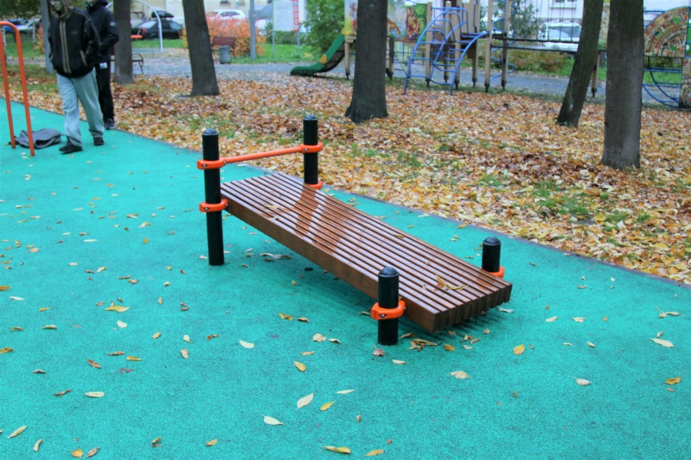 В ходе проведения ремонтных работ в весенне-летний период на спортивной площадке выполнены работы: монтаж стоек спортивного оборудования, бетонирование опорных стоек спортивного оборудования. Установлено спортивное оборудование: секция из рукохода, перекладины и шведской лестницы, брусья стандарт, параворкаут брусья, секция из трех перекладин разноуровневая, лавка, брусья крестовые овальные, информационный щит, 2 теннисных стола.