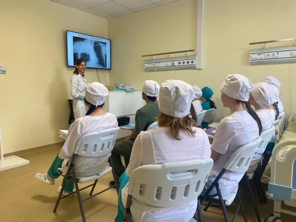 Вместо традиционных лекций в аудиториях — погружение в профессию: будущие медики отрабатывают жизненно важные навыки. Под руководством наставников они тренируются измерять давление, осваивают технику сестринского ухода при болезнях дыхания с использованием небулайзера и аппарата Боброва, а также отрабатывают забор крови и постановку внутривенных инъекций. Отдельной частью практики стало знакомство с работой приемного покоя изнутри.