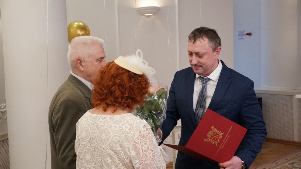 В Колпино чествовали супружеские пары, отметившие золотую, изумрудную и бриллиантовую свадьбы