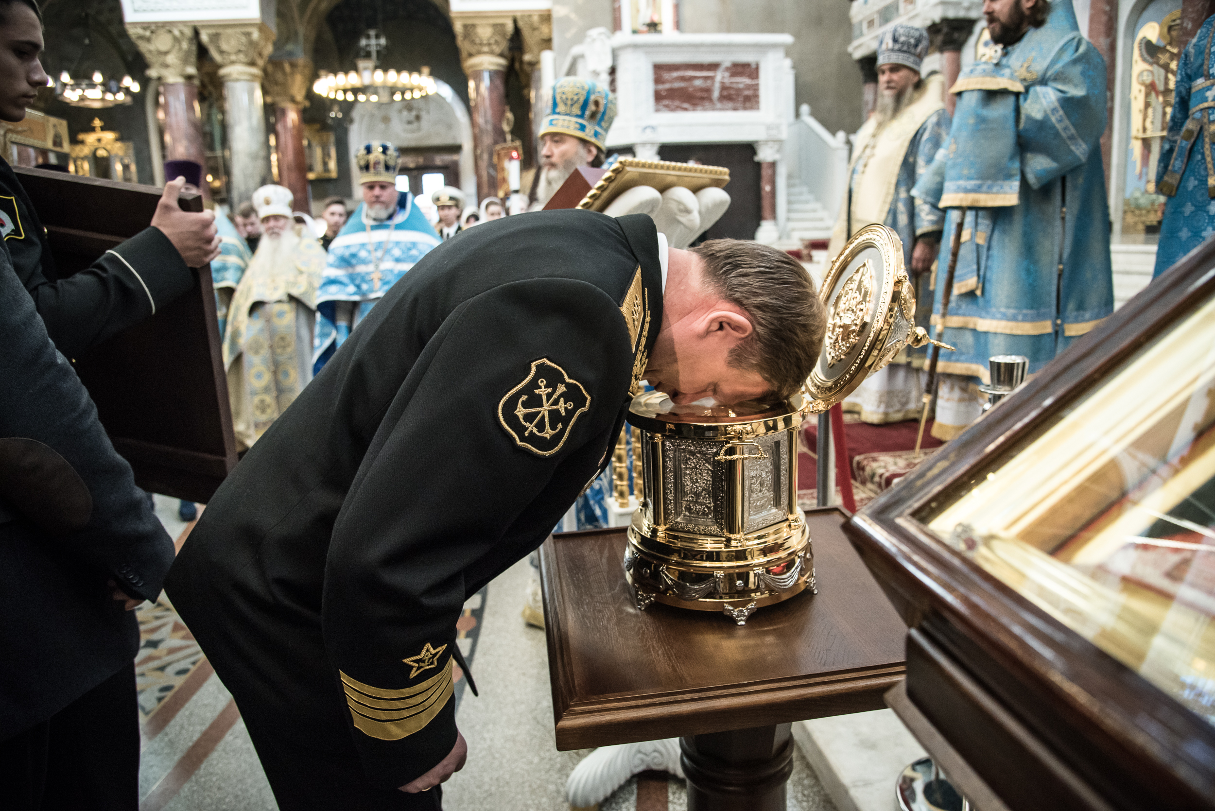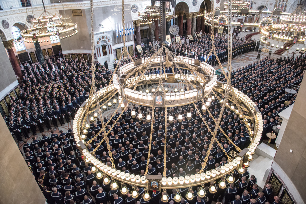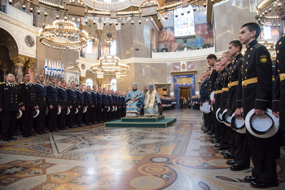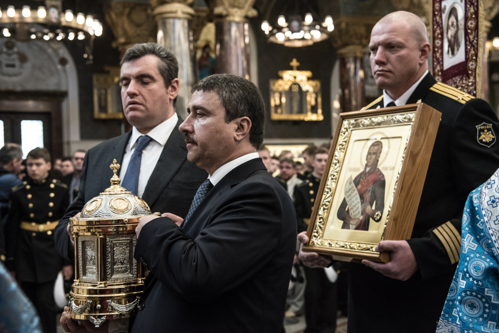 Литургия в Кронштадтском Морском соборе и церемония передачи ковчега с мощами Ф.Ф. Ушакова.