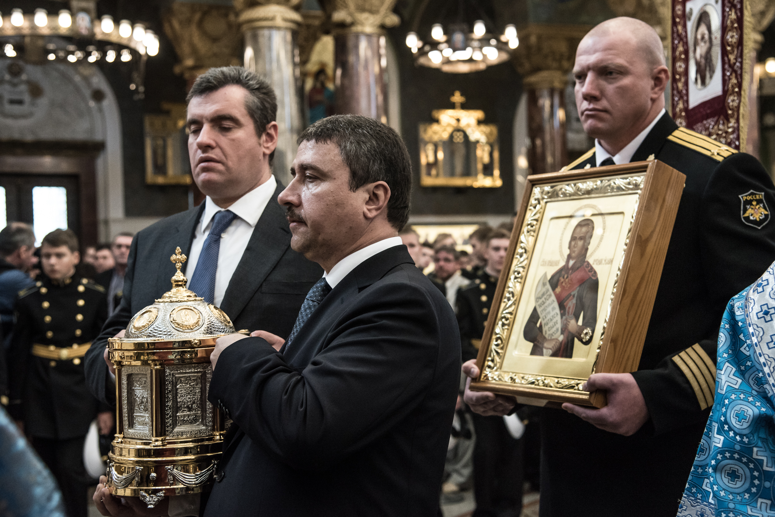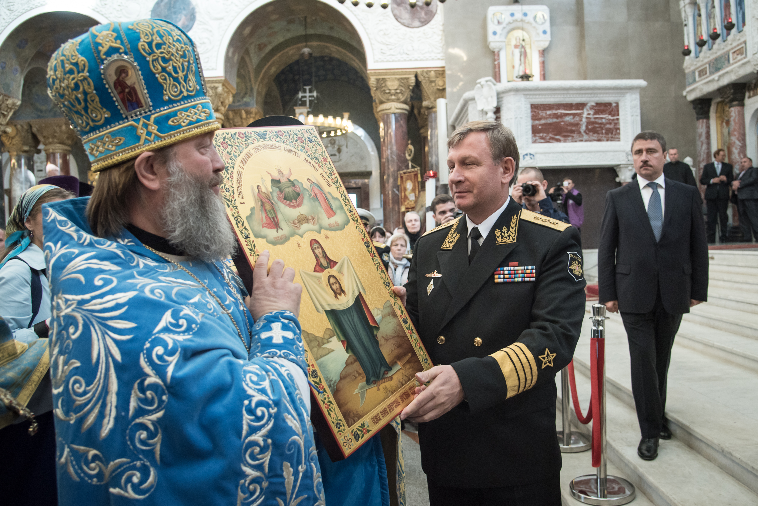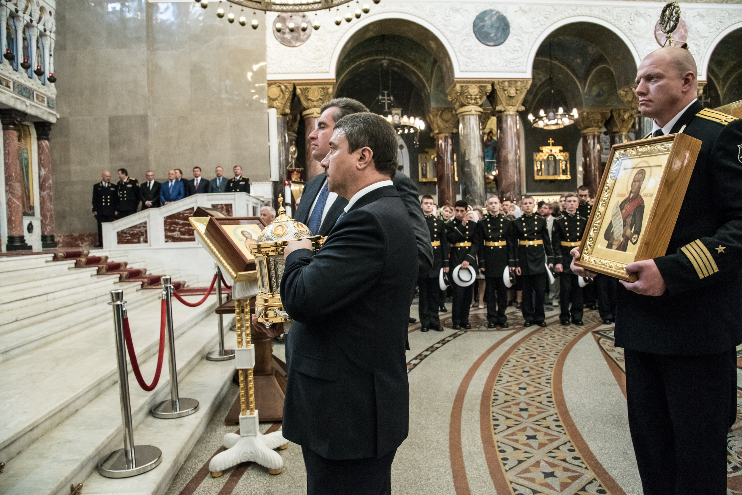 Литургия в Кронштадтском Морском соборе и церемония передачи ковчега с мощами Ф.Ф. Ушакова.