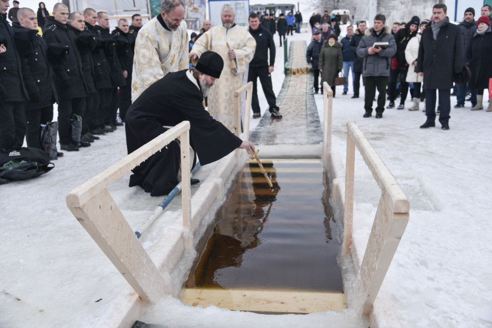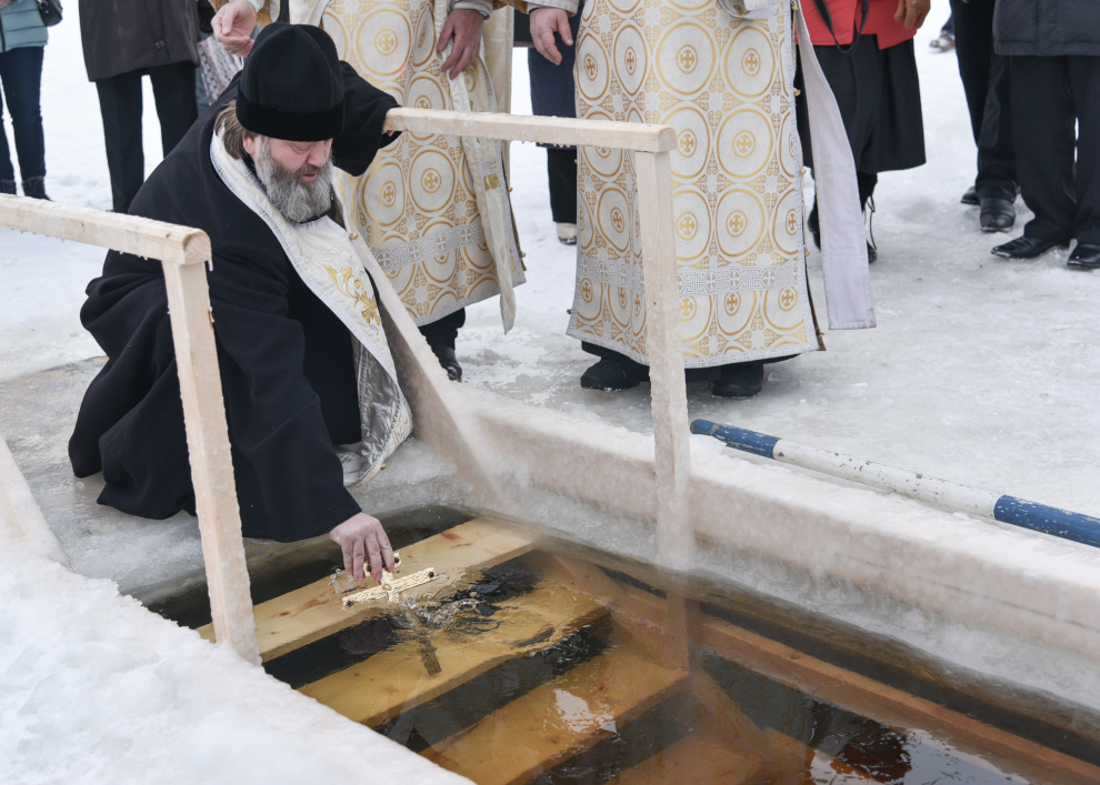 Праздничный молебен и освещение Иордани на месте Крещенского купания .