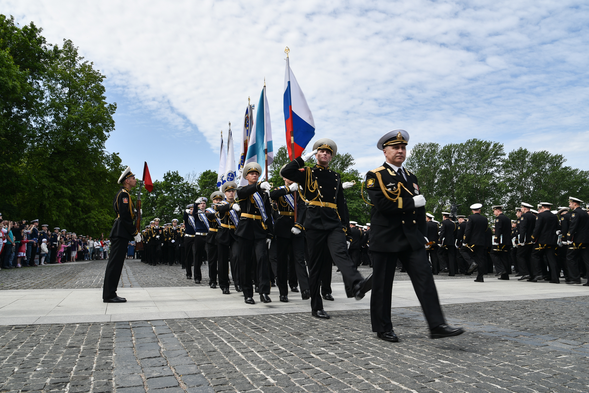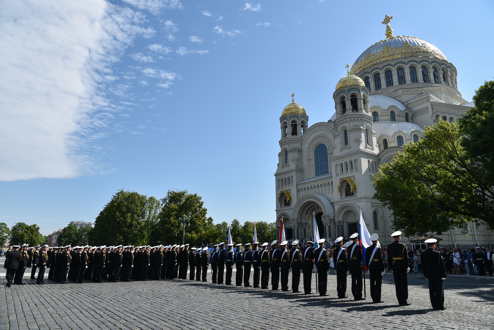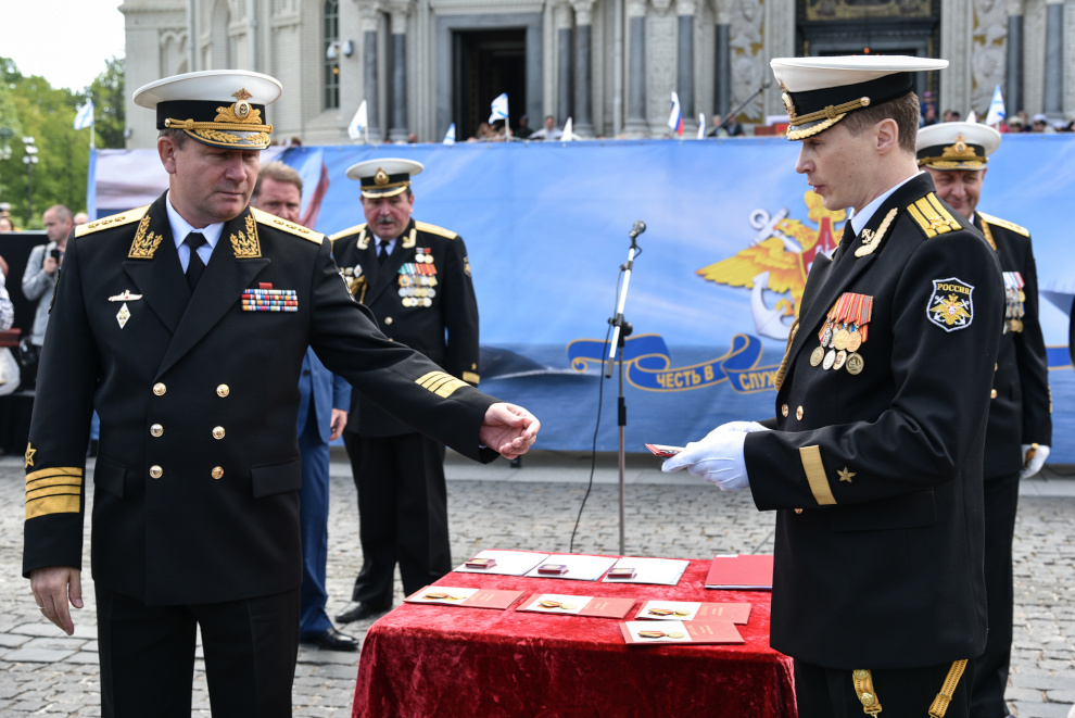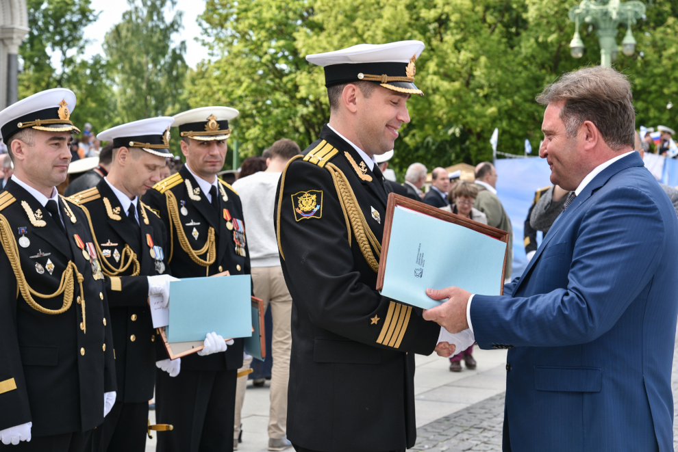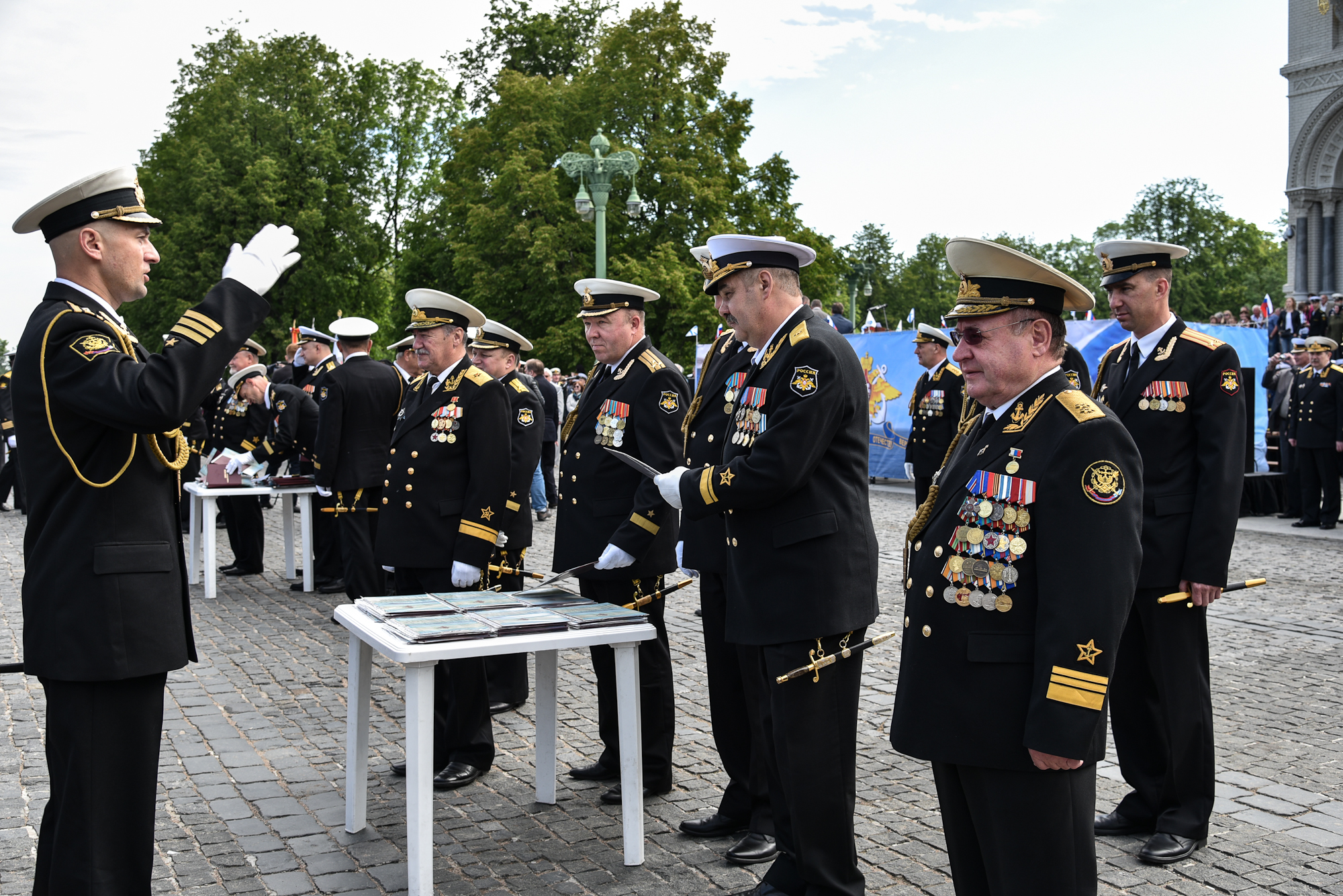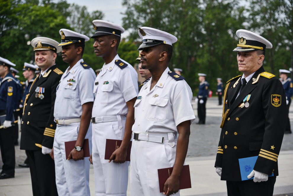 На Якорной площади состоялось проведение воинского ритуала вручения выпускникам Военно-морских учебных заведений Санкт‑Петербурга аттестатов, дипломов, кортиков, производство в офицеры.