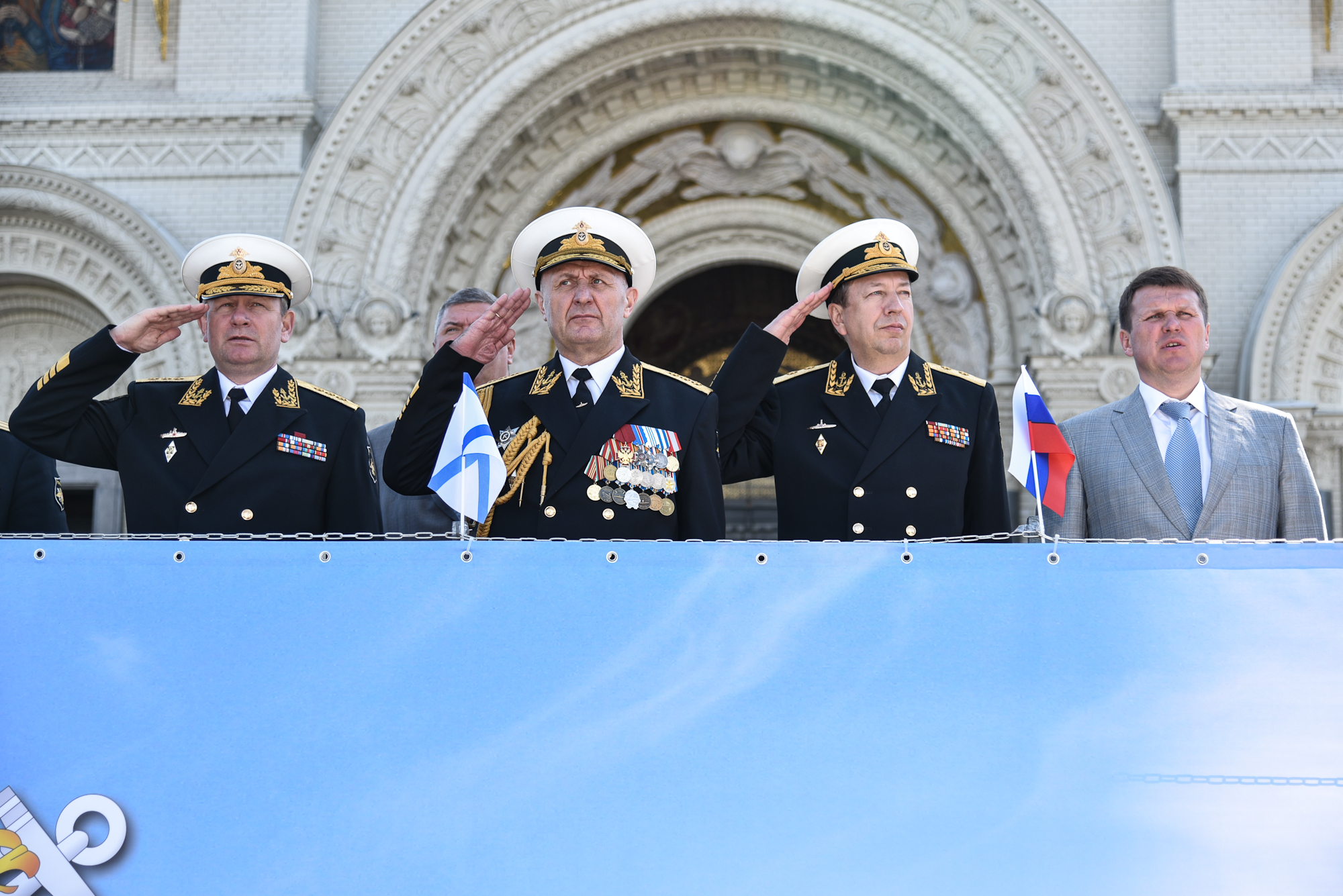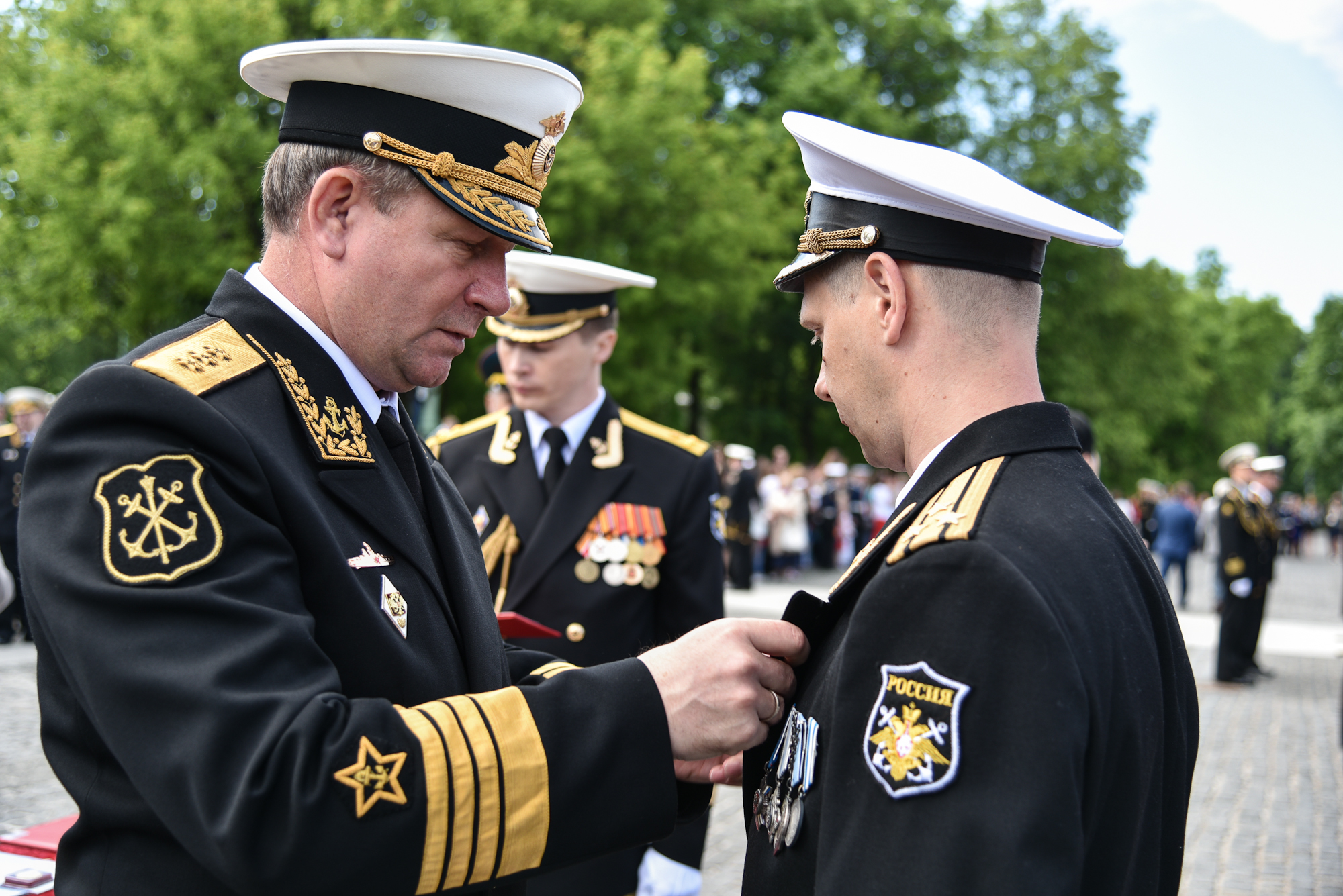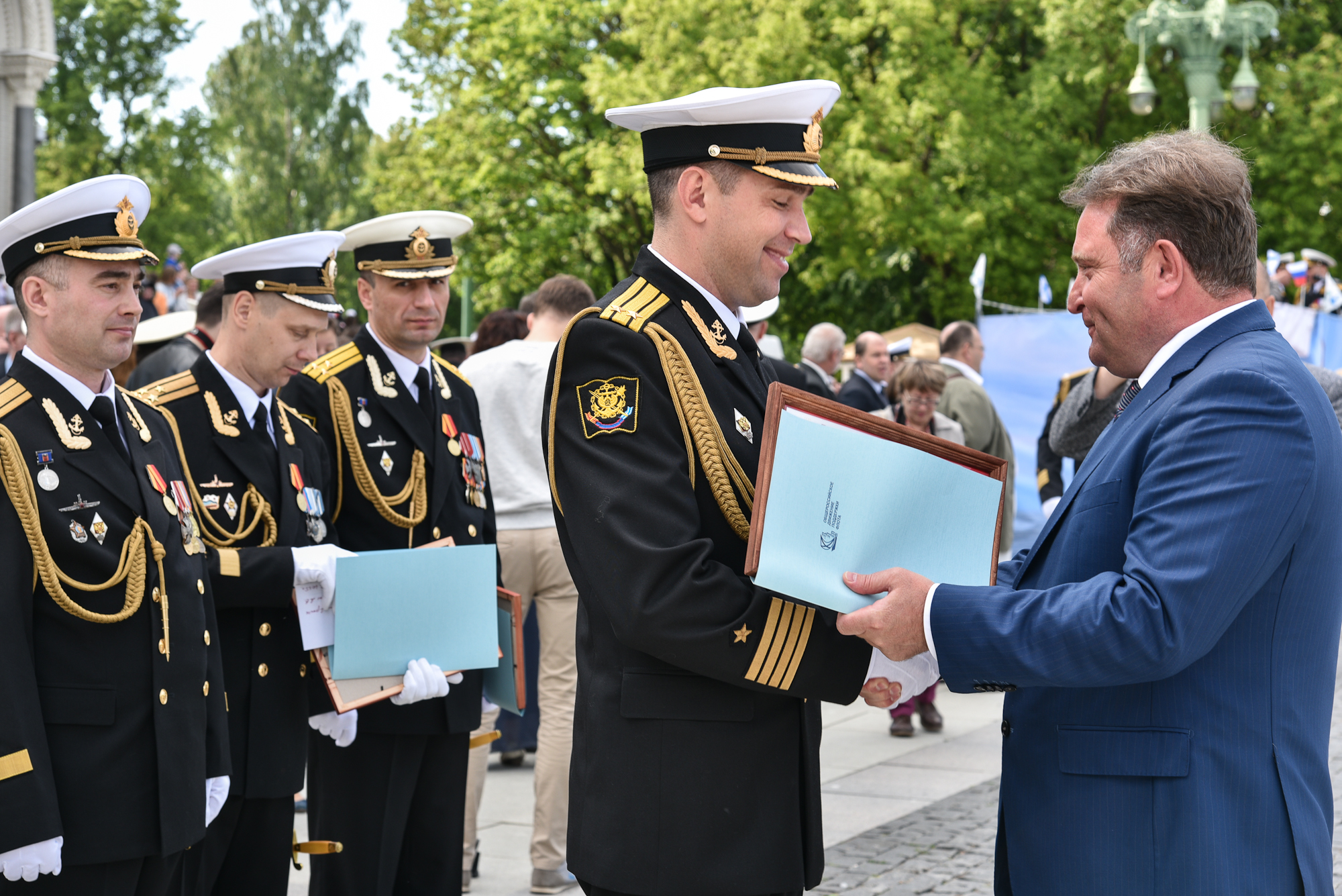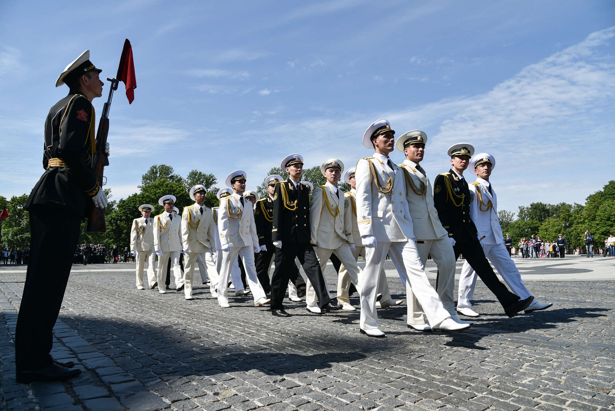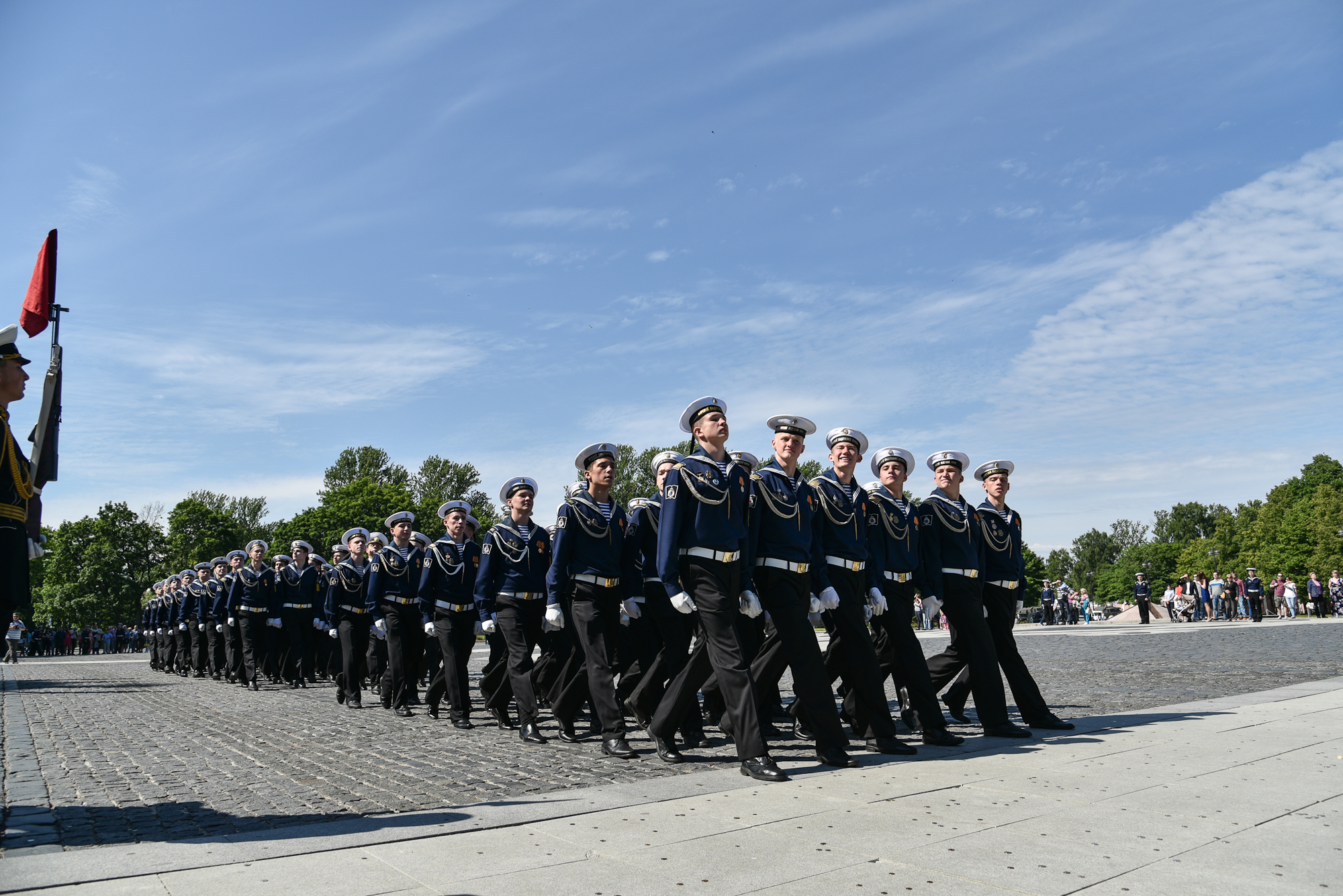На Якорной площади состоялось проведение воинского ритуала вручения выпускникам Военно-морских учебных заведений Санкт‑Петербурга аттестатов, дипломов, кортиков, производство в офицеры.