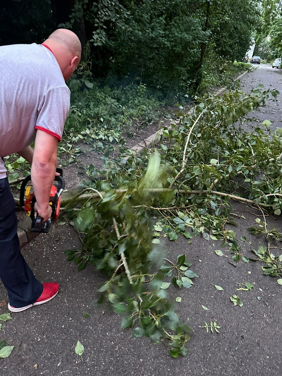На Разводной на газон упала черёмуха, на Блан-Менильской не устояла берёзка. Перегородило дворовой проезд упавшее дерево и на ул. Аврова.