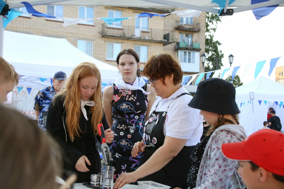 Сотрудники Подростково-молодёжного центра, воспитанники молодёжных клубов и приглашенные гости подготовили насыщенную программу праздника: творческие мастер-классы (роспись бандан, создание значков, брелоков, ловцов снов, граффити); спортивные активности (атлетическая гимнастика, армрестлинг и зона ГТО, крамплинг); игры (джакколо и шаффлборд, лазерный тир, зона киберспорта и виртуальной реальности); патриотические выставки участников проекта "Звезда" и поискового отряда "Наше время", плетение маскировочных сетей для СВО. Любой желающий мог сфотографироваться в фотозоне или воспользоваться услугами фотобудки.