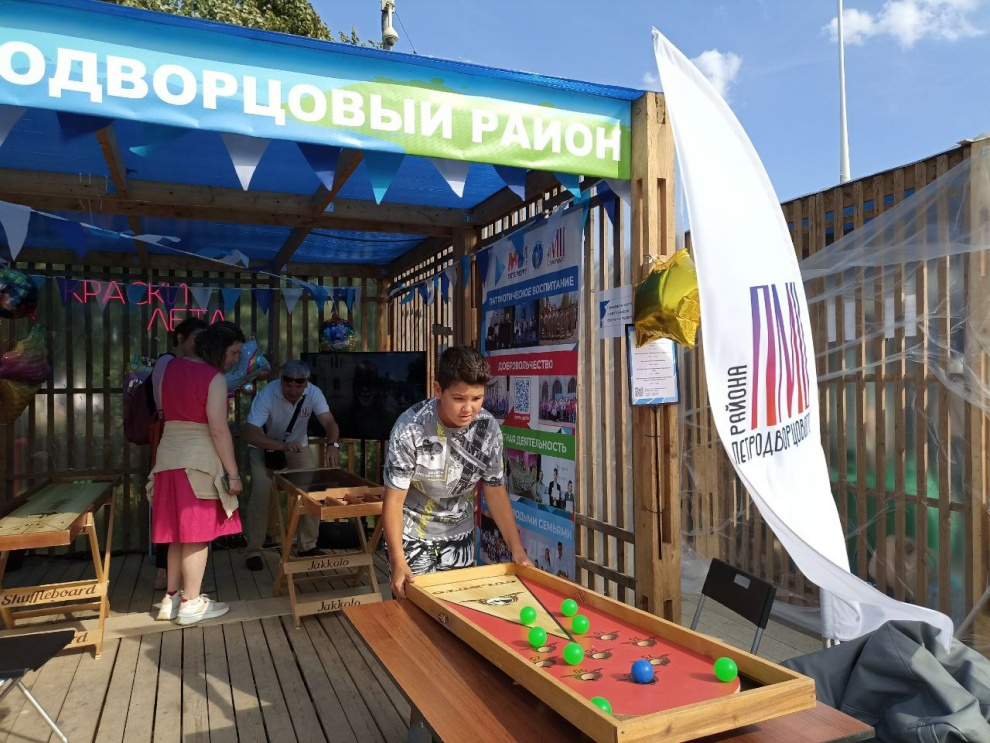 Масштабное мероприятие с участием молодежных учреждений со всего города состоялся в минувшее воскресенье в парке имени 300-летия Санкт‑Петербурга. На площадке Петродворцового района проходили мастер-классы по созданию крафтовой открытки, настольным спортивным играм, атлетической гимнастике, армлифтингу, сборке и разборке автомата, была организована выставка изделий из переработанной бумаги и тематическая фотозона.