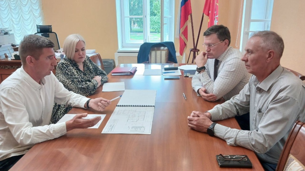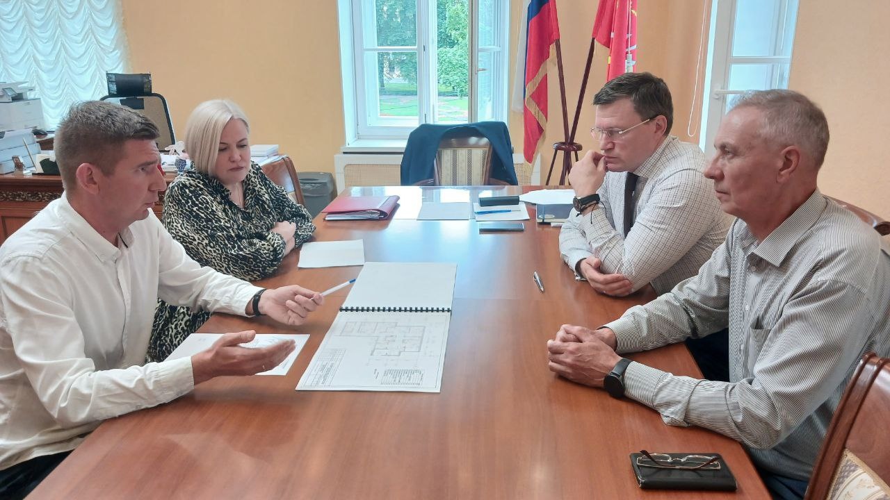 Глава администрации Петродворцового района Александр Якушев провел рабочее совещание с представителями застройщика жилых кварталов на проспекте Буденного в Стрельне и главным врачом городской поликлиники №122 Еленой Литвиновой.