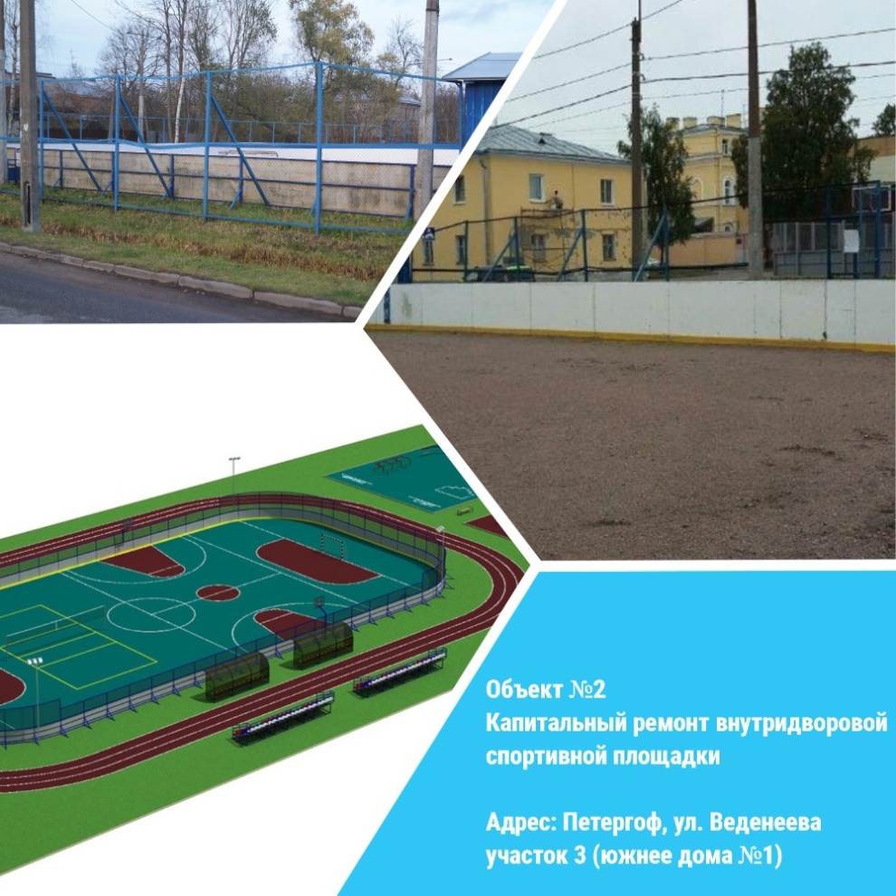 № 2. Капитальный ремонт внутридворовой спортивной площадки по адресу: г. Петергоф, ул. Веденеева, участок 3 (южнее дома №1).
