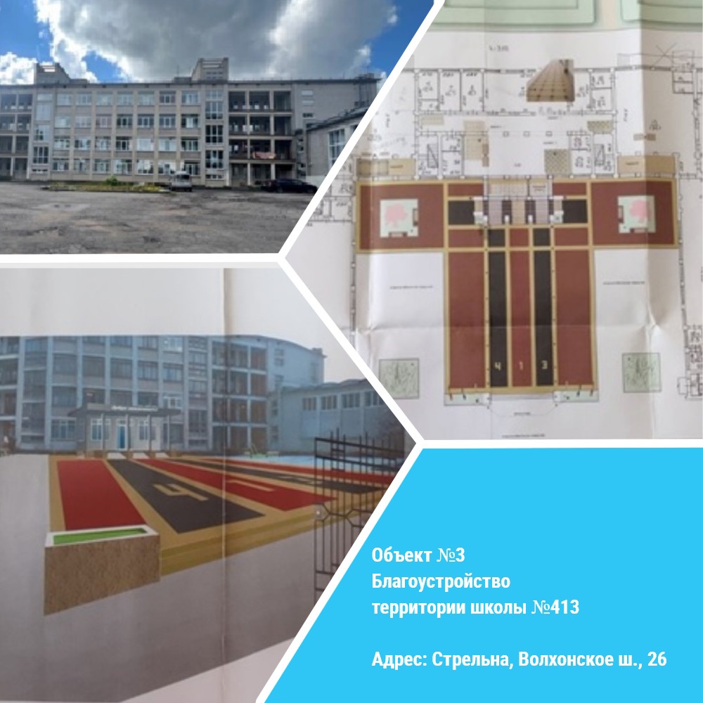 № 3. Благоустройство территории школы № 413 по адресу: пос. Стрельна, Волхонское шоссе, д. 26.