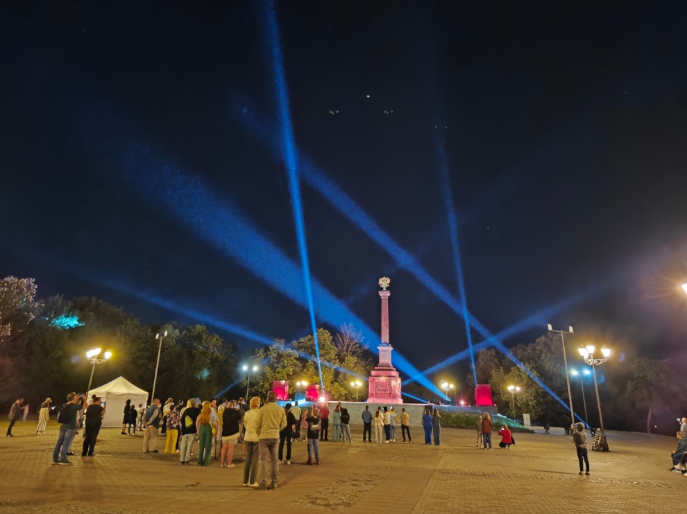 Ночное небо осветили 12 прожекторов, в память о тех, кто сражался за нашу свободу и независимость.