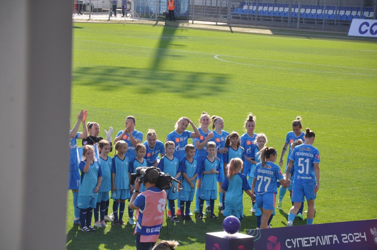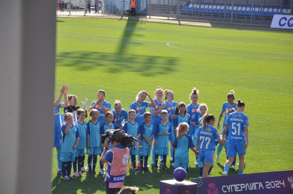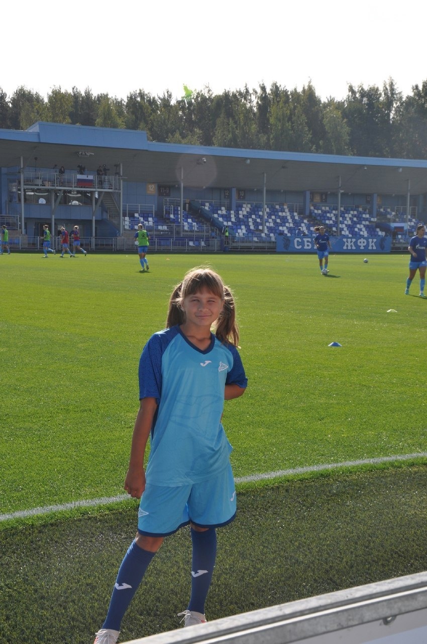 Петергофская футболистка Полина Петрова 15 сентября приняла участие в матче между «Зенитом» и «Локомотивом» 19 тура Суперлиги 2024 женских футбольных команд. Пока – в статусе «маскота»: девочка «вывела» на поле полузащитника «Зенита» Алёну Андрееву.