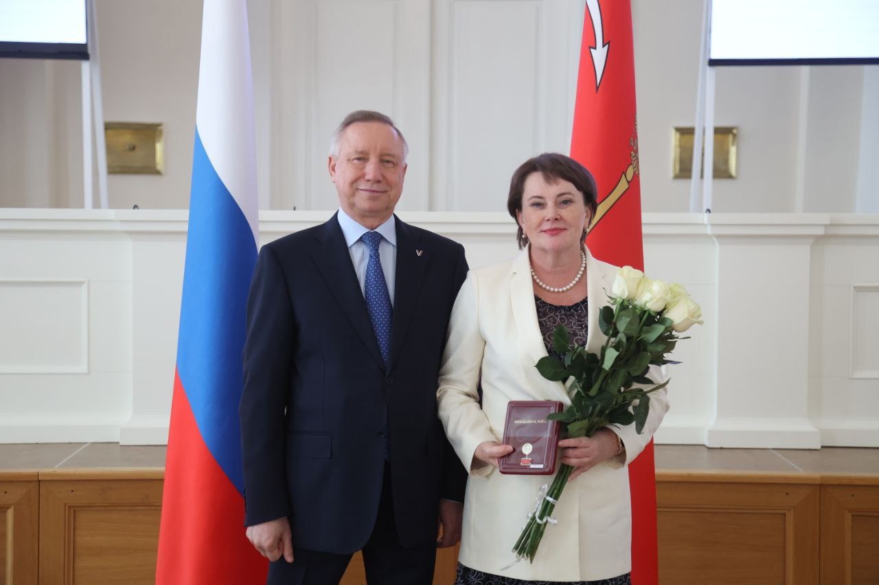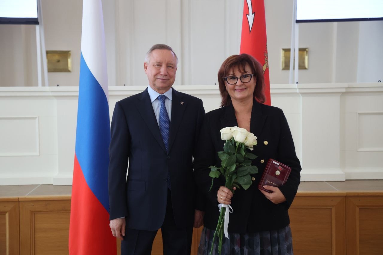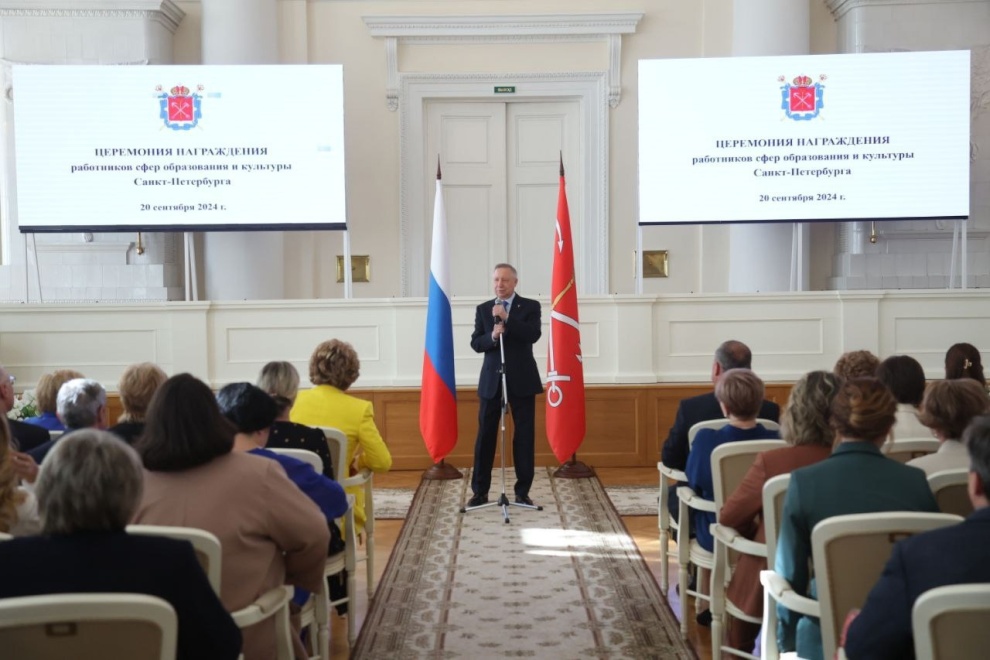 20 сентября в Смольном награждали петербуржцев, внесших выдающийся вклад в развитие системы образования Санкт‑Петербурга. Губернатор Александр Беглов вручил воспитателям, музейным работникам, учителям, педагогам, мастерам, директорам нагрудный знак «За гуманизацию школы Санкт‑Петербурга».