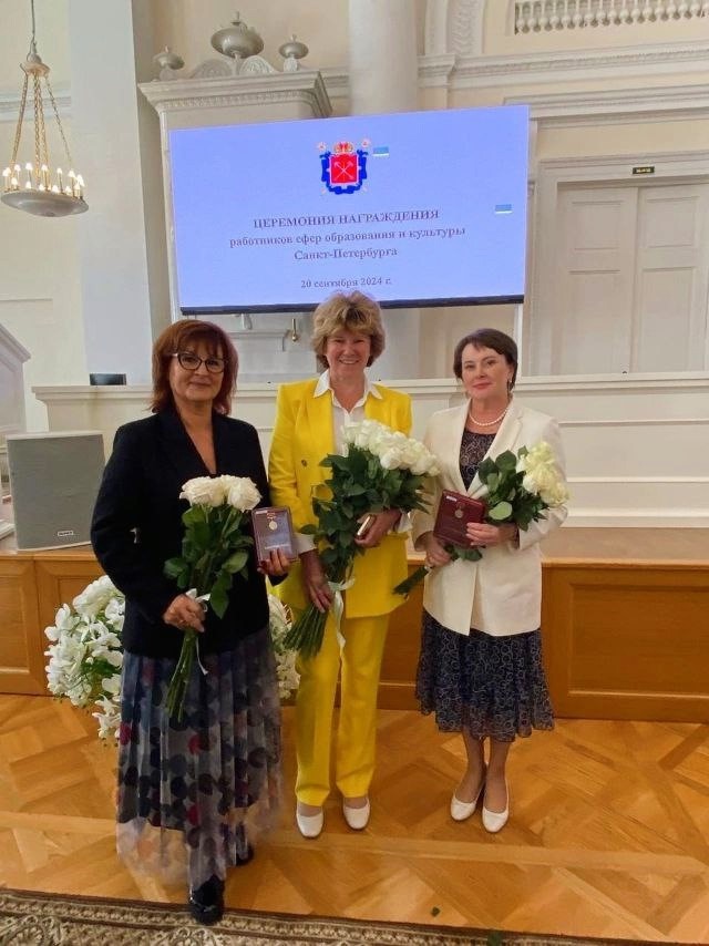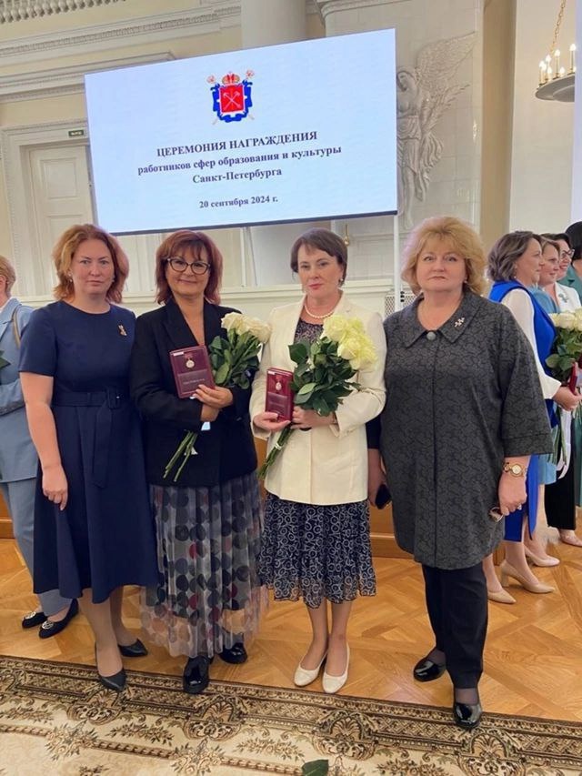 В номинации «За вклад в развитие воспитания и образования в Санкт‑Петербурге» правительственной наградой были отмечены директор Петергофской гимназии императора Александра II Инна Петровна Моисеенко и учитель школы № 411 «Гармония» с углубленным изучением английского языка Вероника Владимировна Шибанова.