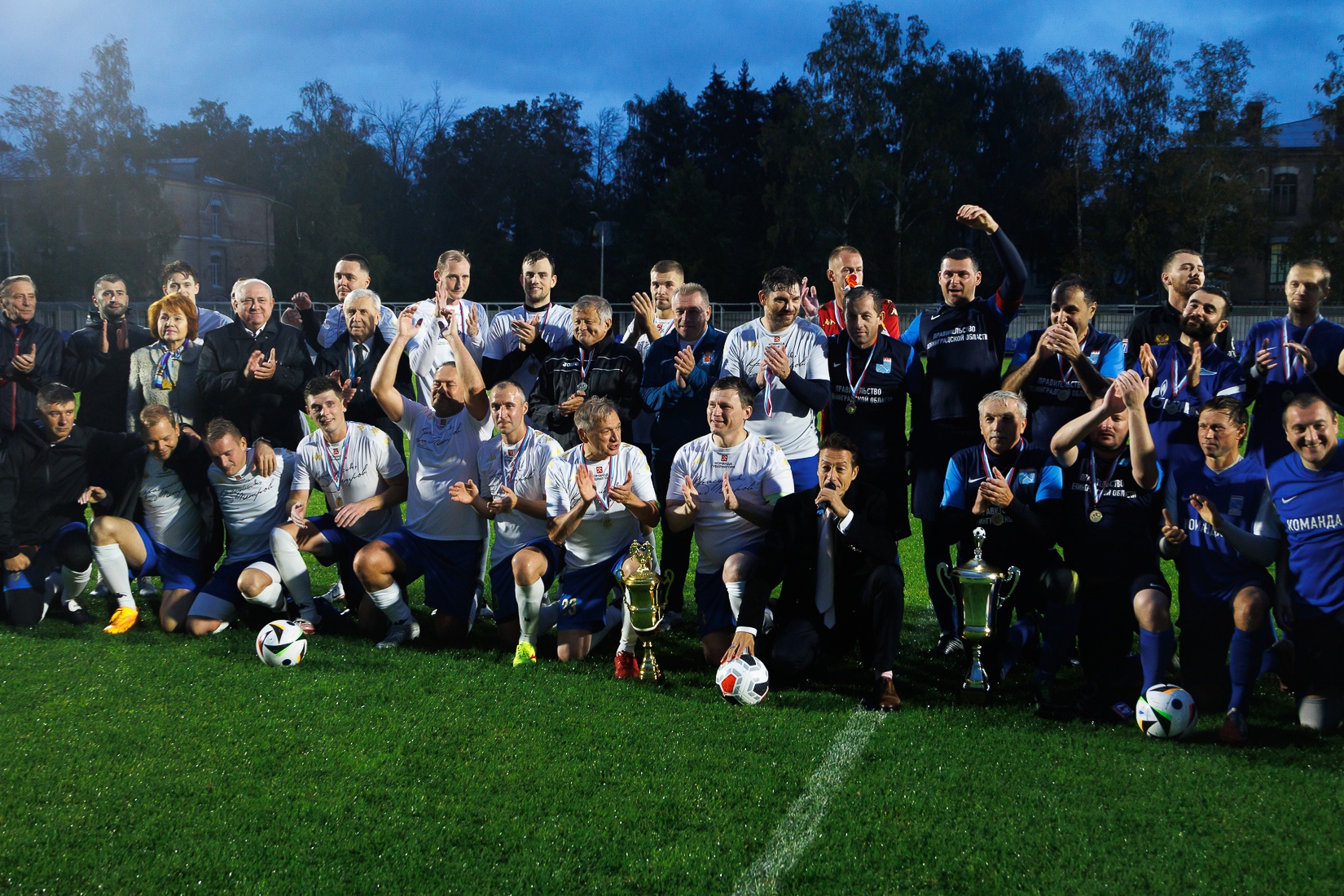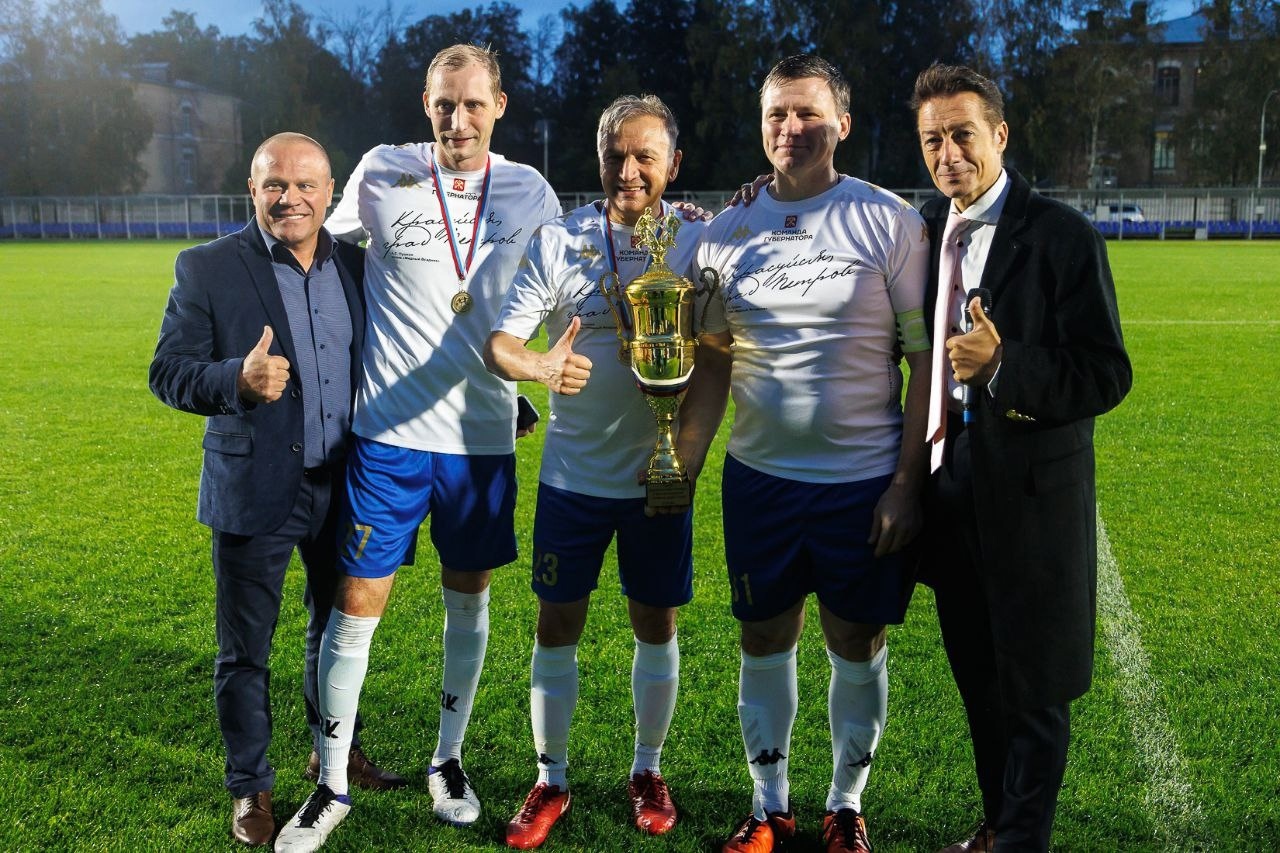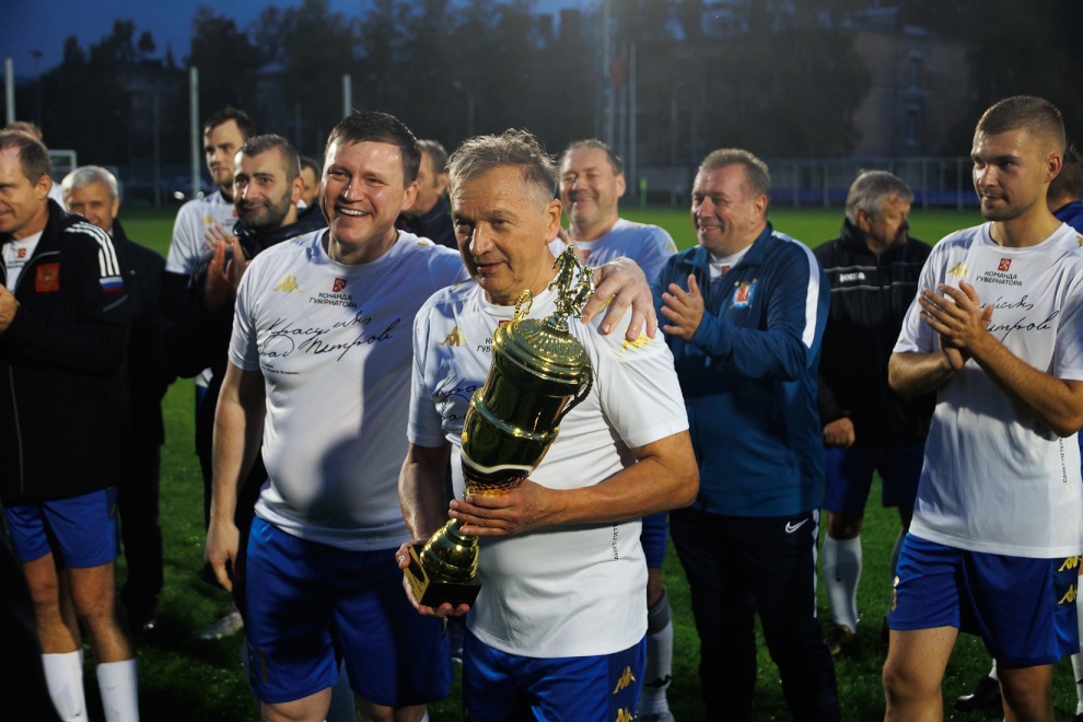 На «Спартаке» прошел товарищеский футбольный матч между командами правительств Санкт‑Петербурга и Ленинградской области
