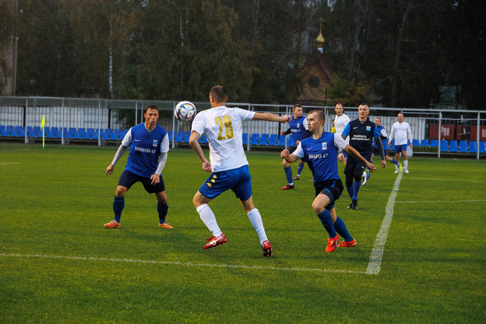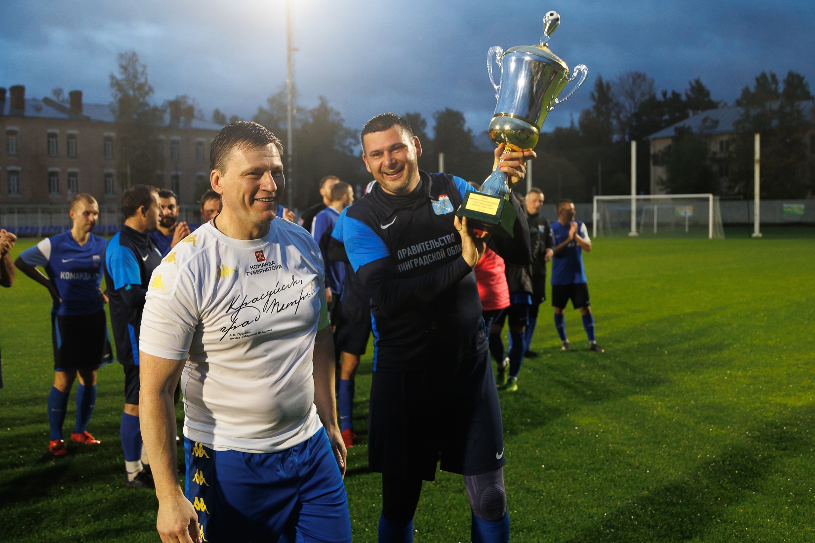 Товарищеские встречи между командами Правительств Санкт‑Петербурга и Ленинградской области не редкость, но впервые соревнования прошли в Петродворцовом районе, на стадионе «Спартак» в Ломоносове. В этот раз счёт 2:1 в пользу петербуржцев. И несмотря на проливной дождь, команды смогли показать хорошую игру, а зрители получили заряд положительных эмоций.