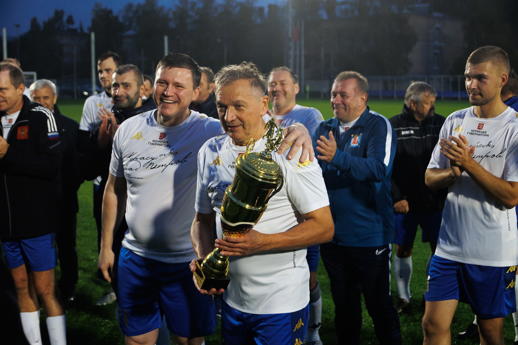 «Благодарю сотрудников Центра физической культуры и спорта Петродворцового района, Ломоносовского городского дома культуры, руководителей муниципальных образований Петергофа и Ломоносова, а также депутата Законодательного Собрания Санкт‑Петербурга Михаила Ивановича Барышникова за помощь в организации и проведении товарищеской встречи. Надеюсь, такие встречи станут традицией и в будущем!» - отметил глава администрации Петродворцового района Александр Якушев, игравший за команду победиелей.