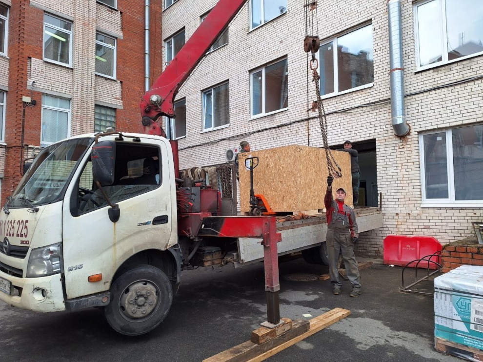 В поликлиническое отделение Николаевской больницы привезли оборудование для рентгенкабинета. Оно будет установлено в круглосуточном травматологическом пункте Петродворцового района, до открытия которого осталось совсем немного времени.