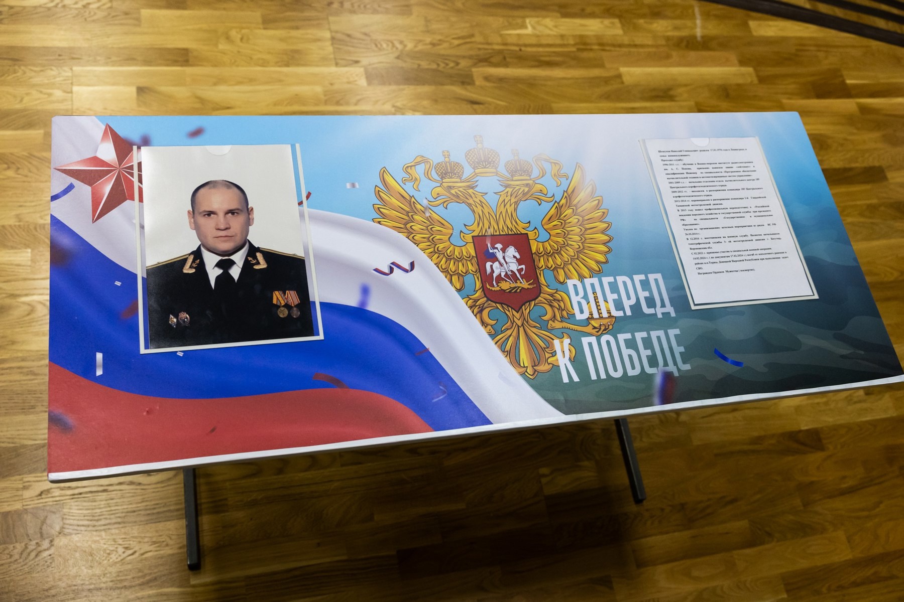 Парту открыла жена героя Анна Яковлевна Шешукова. Она рассказала, что Коля всегда хотел стать военным, как его папа, и сомнений в выборе профессии у него никогда не было.