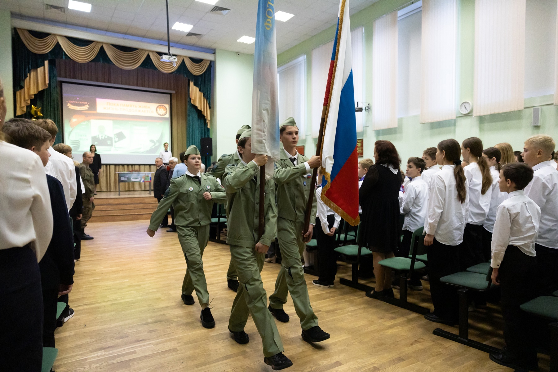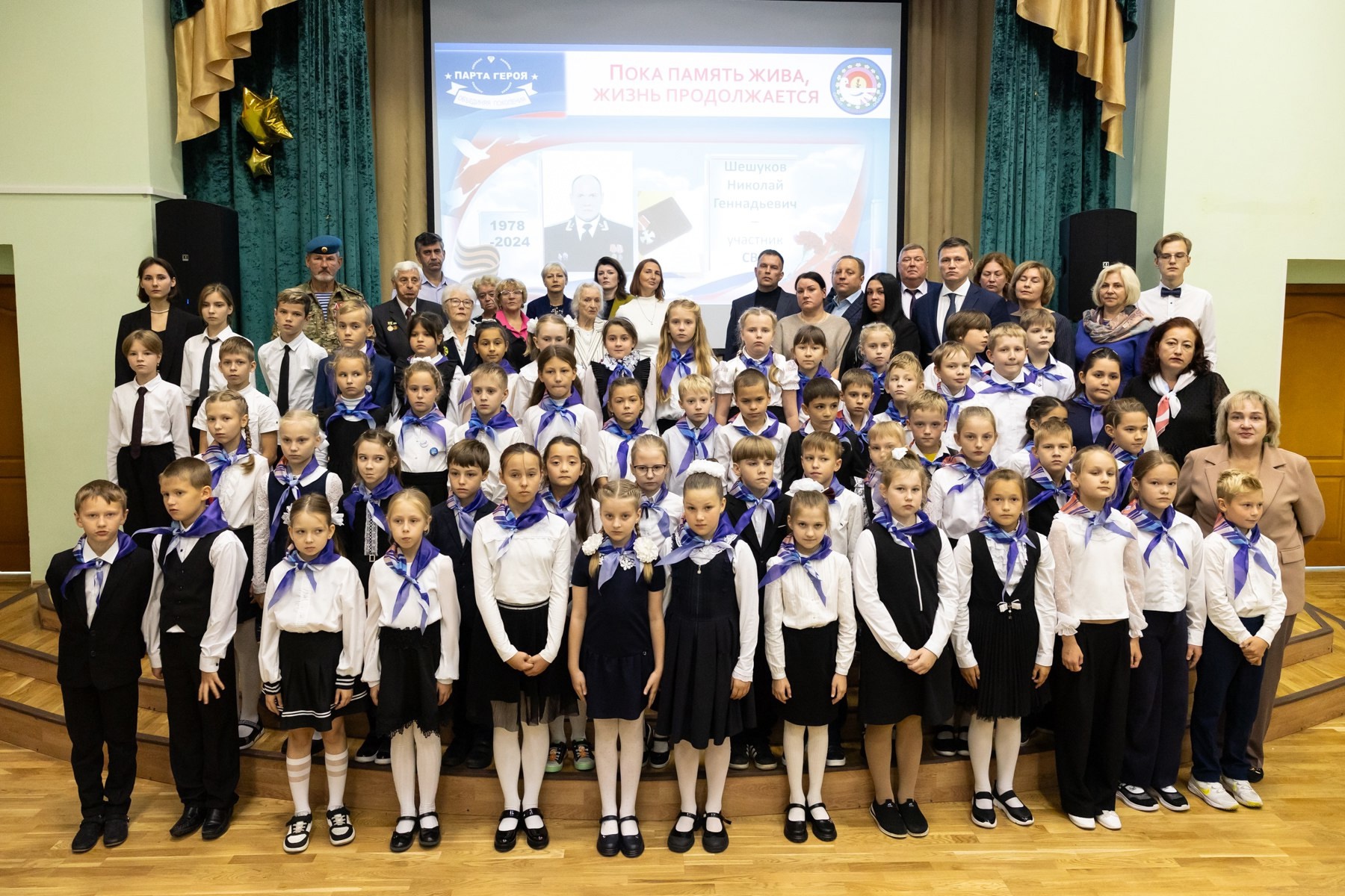 В школе № 529 открыли «Парту Героя», выпускника школы, участника СВО, кавалера Ордена Мужества Шешукова Николая Геннадьевича. Среди гостей торжественного мероприятия были родные и друзья Николая, его учителя, а также Андрей Романов, руководитель антитеррористической комиссии при администрации Губернатора, и глава Петродворцового района Александр Якушев.