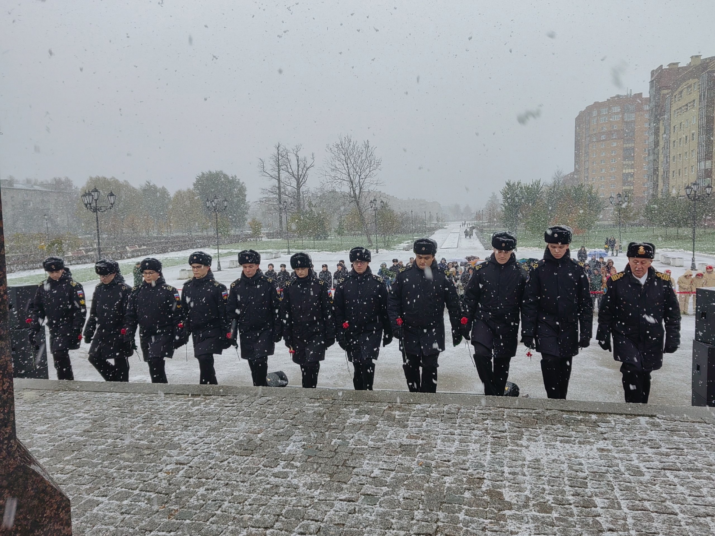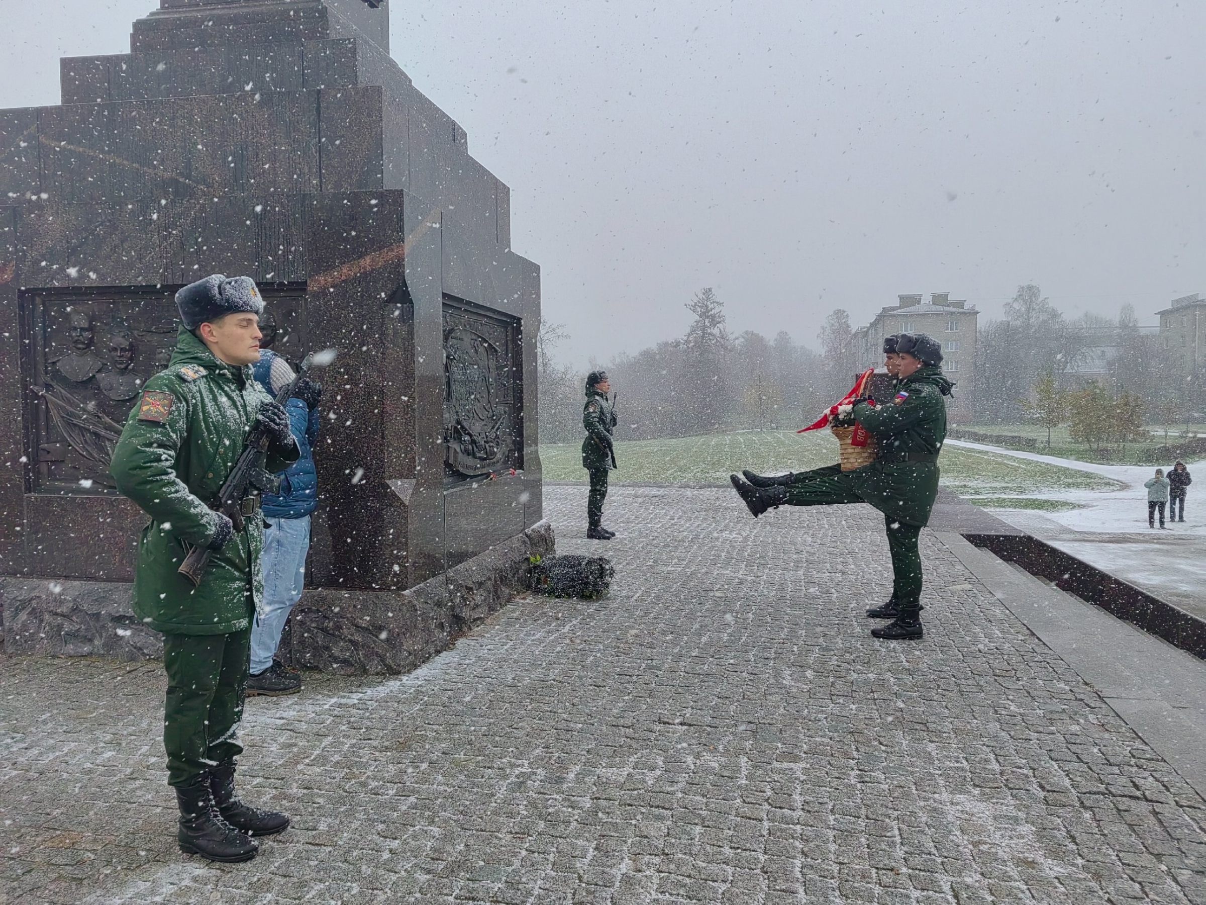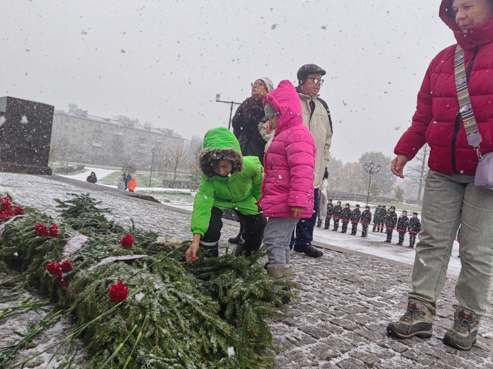 Цветы к стеле возложили заместитель главы Петродворцового района Елена Юрьевна Щербина, депутаты местного самоуправления, представители частей ломоносовского гарнизона, юнармейцы, курсанты, жители города.