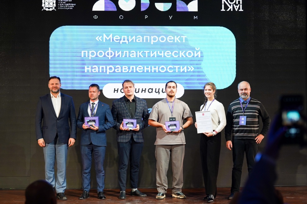 Замдиректора по организационно-методической работе Подростково-молодёжного центра Петродворцового района Любовь Фомина, заведующий ПМК «Экватор» Наталья Большакова и специалист по социальной работе с молодежью Елизавета Голикова заняли 3 место в номинации «Команда учреждения по делам молодежи в области профилактической работы». Специалист по связям Артур Армихос Абенданьо – 3 место в номинации «Медиапроект профилактической направленности».