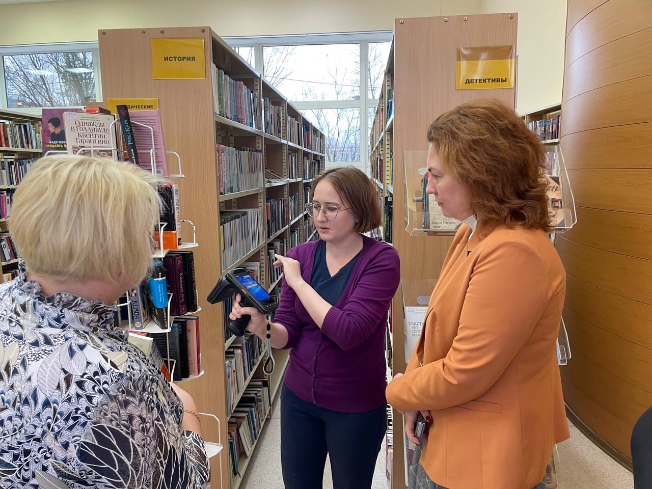 В прошлом году программа модернизации принесла много новинок в библиотечное пространство. Появилось специализированное оборудование для инвентаризации книжного фонда, которое позволяет ускорить и упростить процесс учета. Достаточно провести мобильным считывателем вдоль стеллажей, и устройство автоматически запишет в память информацию обо всех книгах, причем издания не требуется снимать с полки.