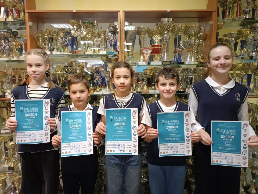 В категории начальных классов первое место заняла команда «Триумф» из 4«В»: Глеб Ганихин, Екатерина Жинжило, Соня Карпова, Тимур Скипа и Алёна Шумеленкова, руководитель Ольга Валерьевна Агрес.