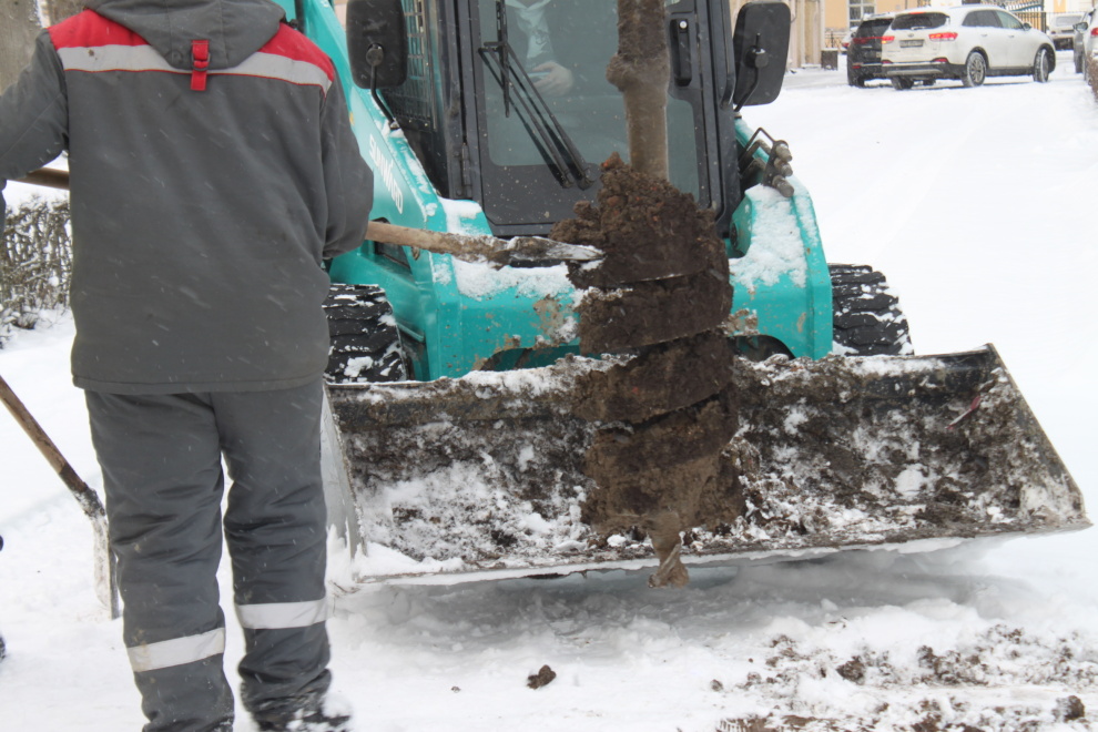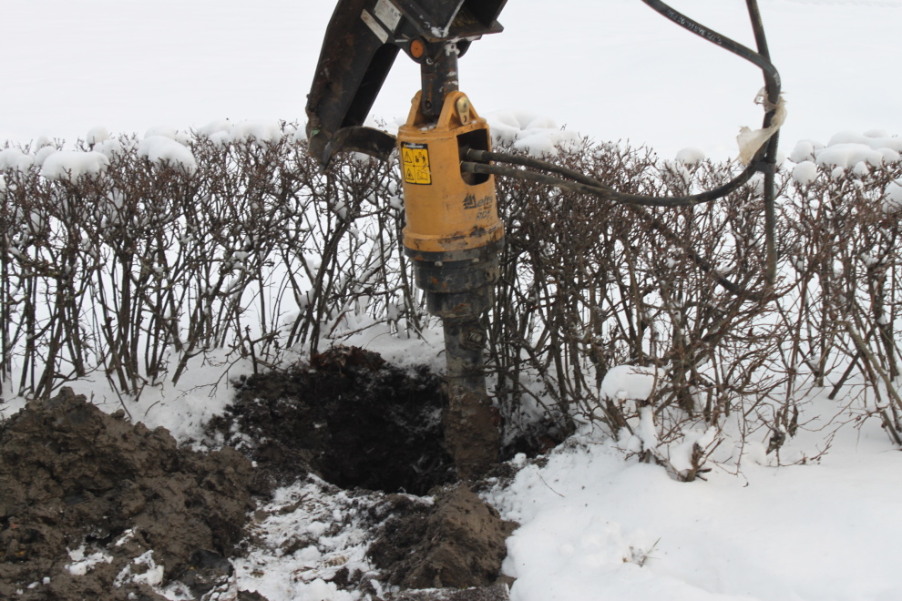 В настоящее время специалисты ведут работы по бурению для дальнейшей установки закладных деталей фундамента с последующим монтажом опор освещения.