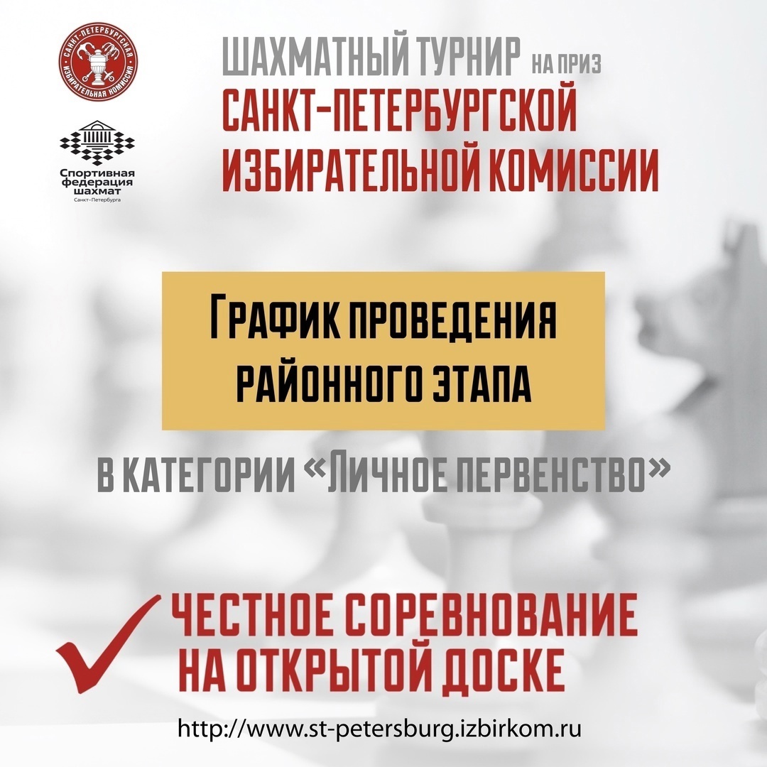 Районный этап Турнира по шахматам на приз Санкт‑Петербургской избирательной комиссии пройдёт в Ломоносове. Принять участие в «Личном первенстве» может каждый желающий, достигший 18-ти лет.