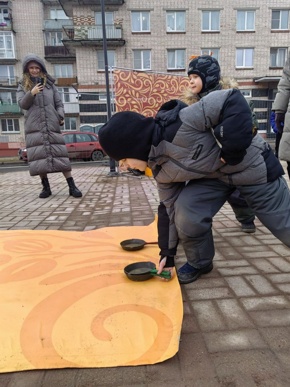 В Ломоносове гостям предлагали сыграть в керлинг сковородками, бросить подкову на счастье, устроить бой мешками, кидаться блинами и еще множество необычных забав. Выполнивших задание угощали блинами!