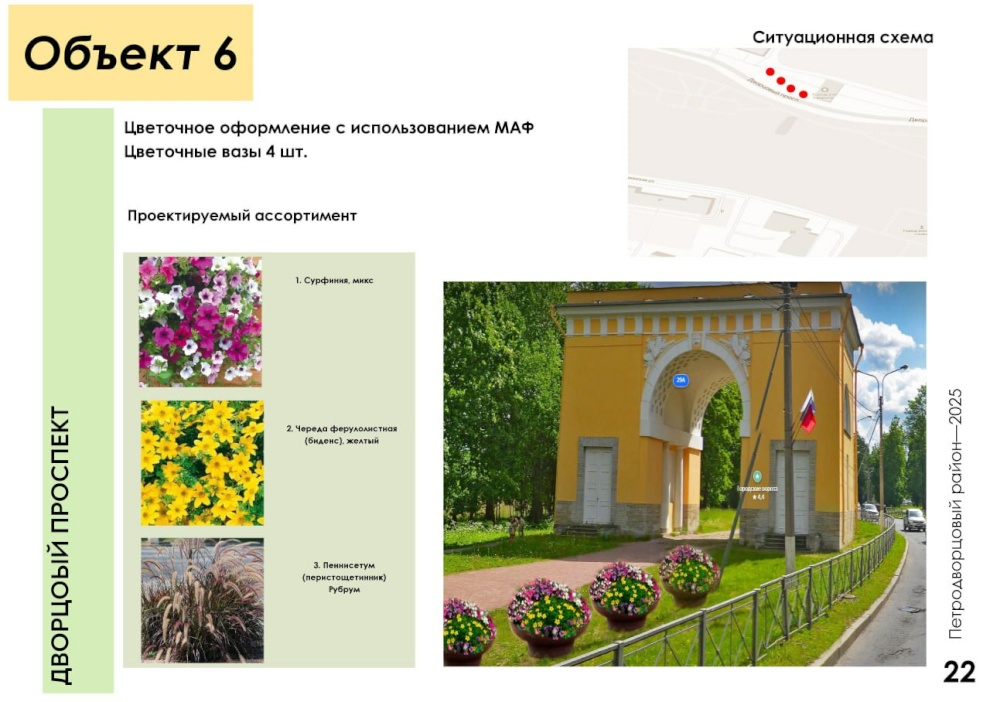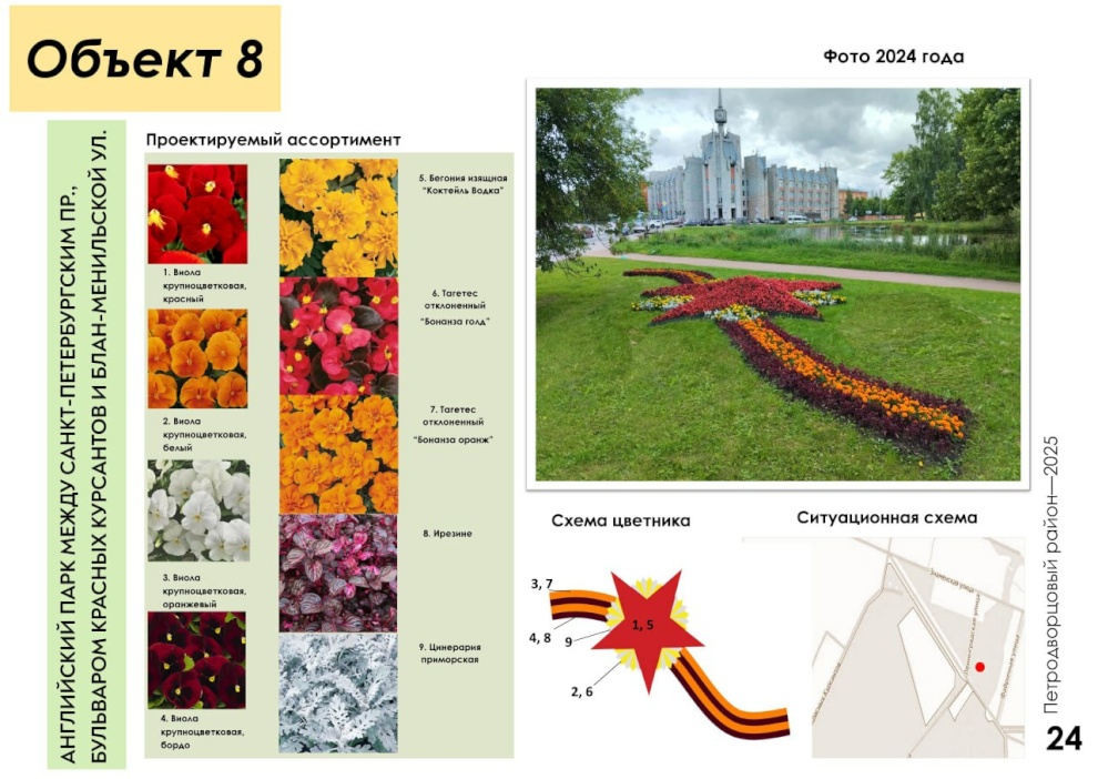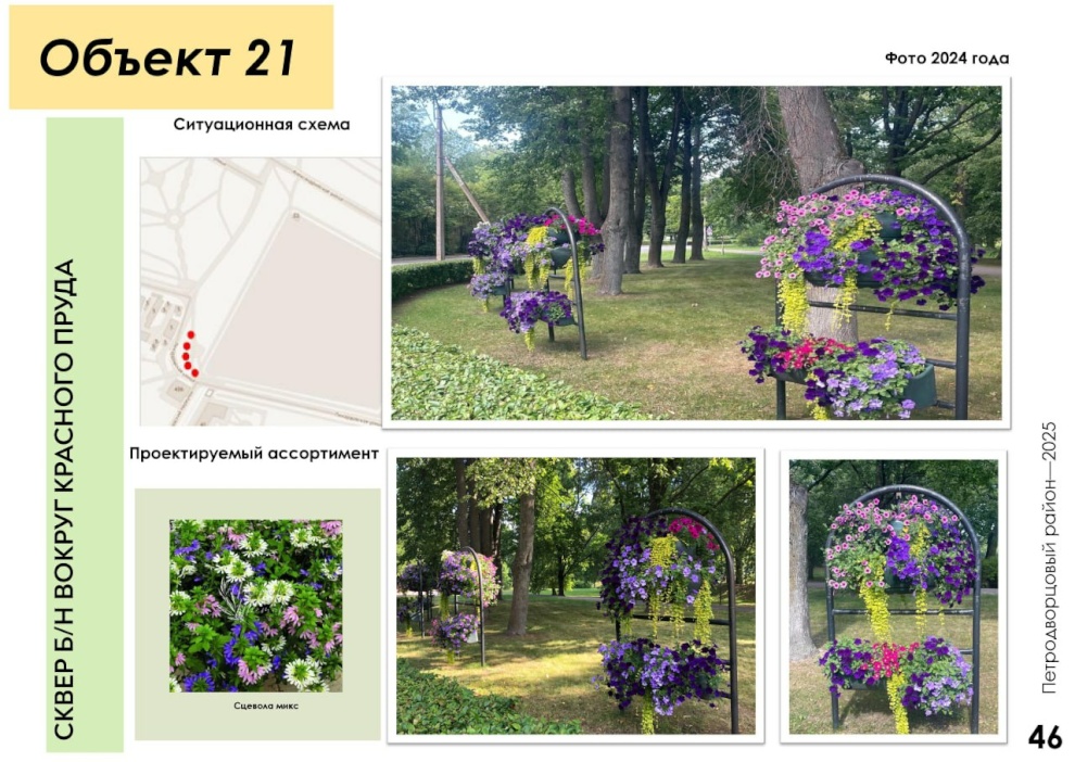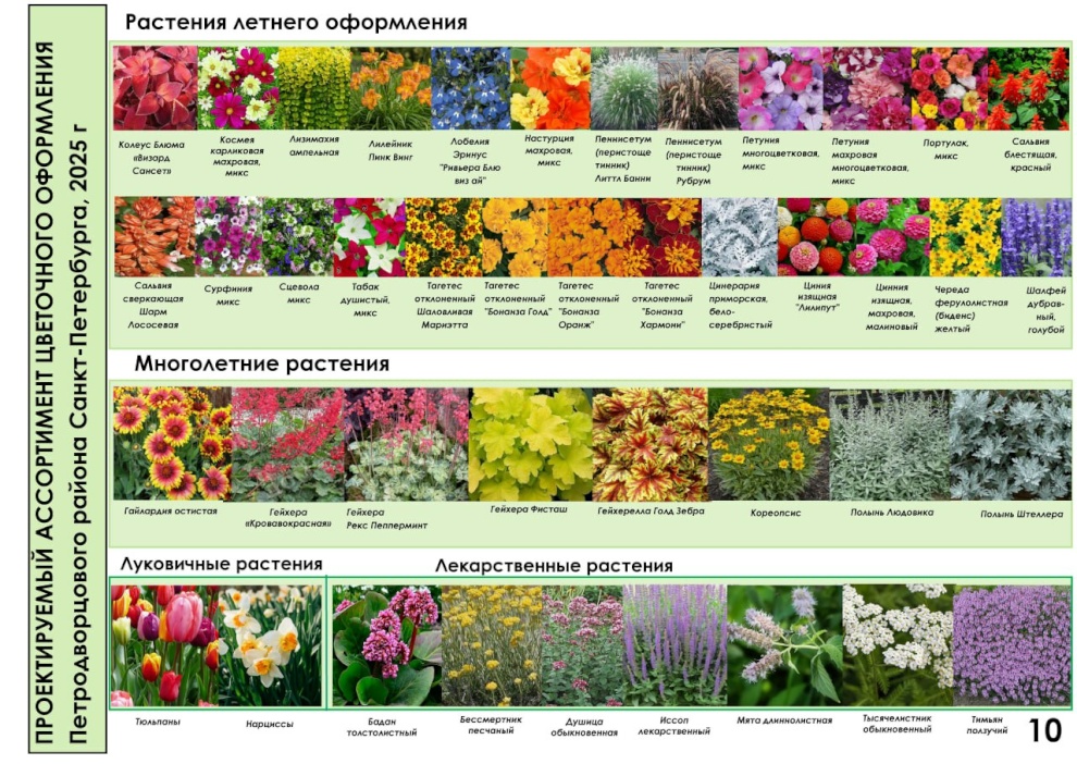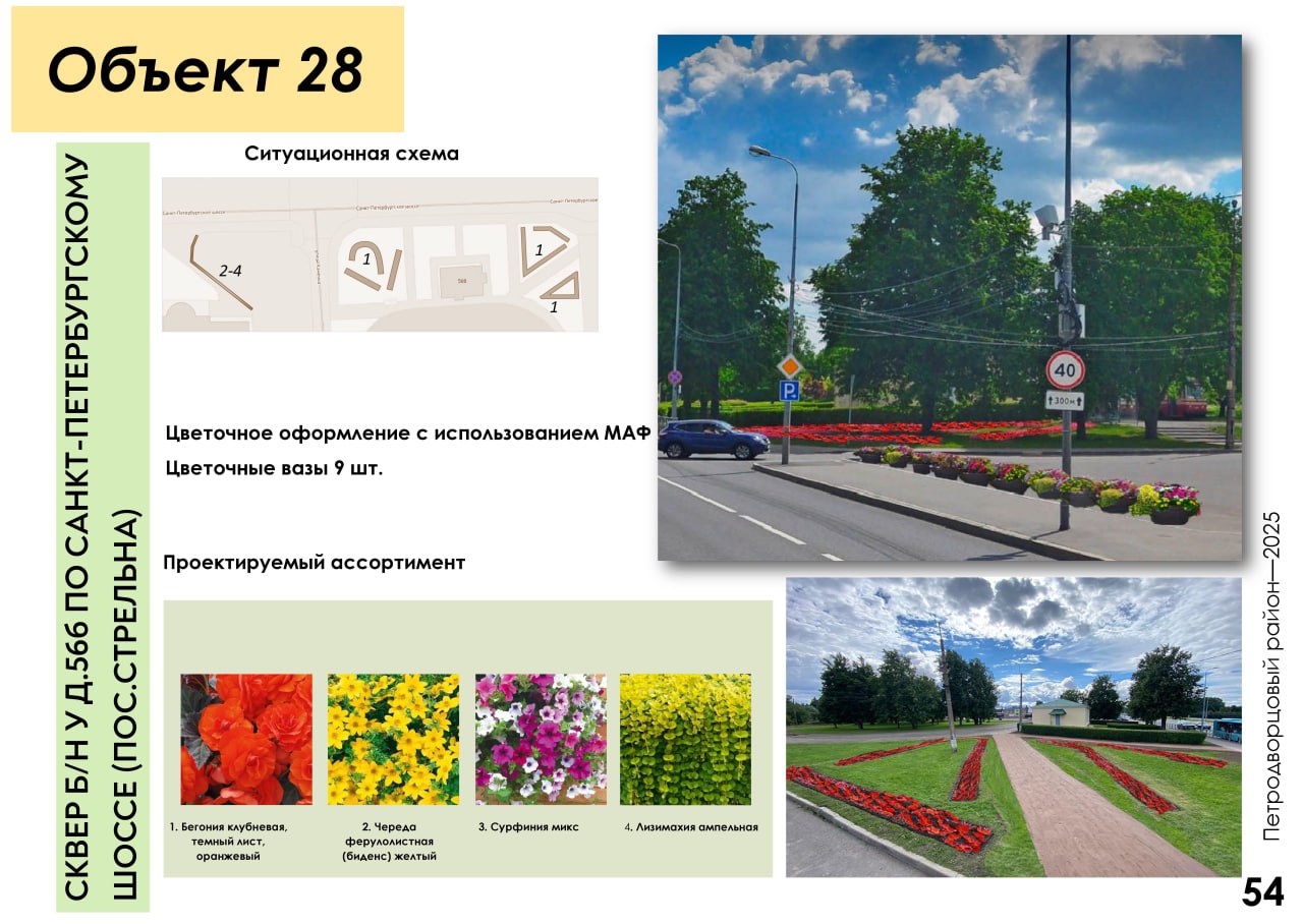 Чтобы сделать Петродворцовый ещё ярче и краше, специалисты «Флоры» увеличили ассортимент цветов: более десяти новых видов растений появятся на клумбах. В этом году высадят на 55 тысяч цветов больше, чем в прошлом. Для всей этой красоты будет выставлено 30 новых вазонов и 50 подвесных конструкций на Санкт‑Петербургском проспекте.