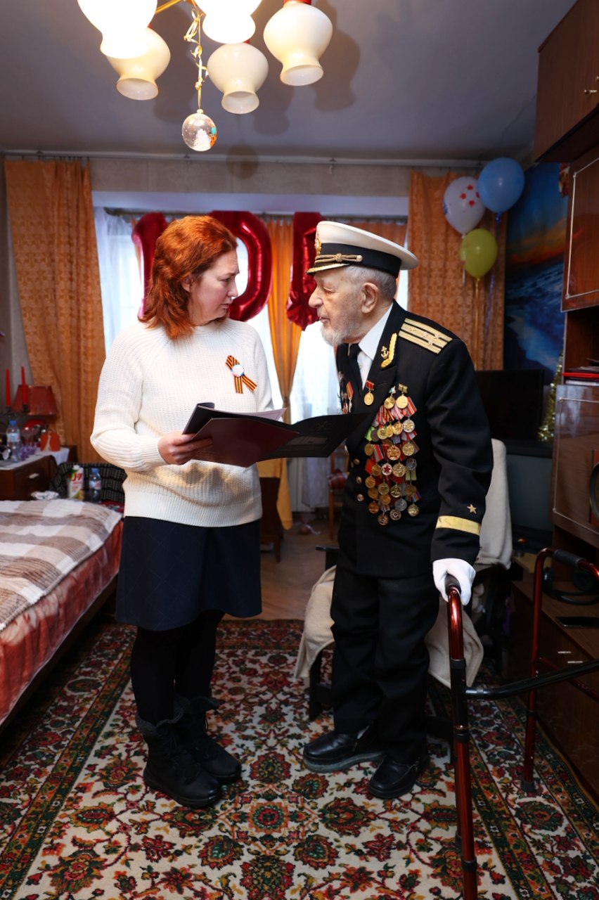 15 марта 2025 года поздравления со 101-летием принимал житель Петродворцового района, замечательный, позитивный, светлый человек – Николай Павлович Загуменнов.