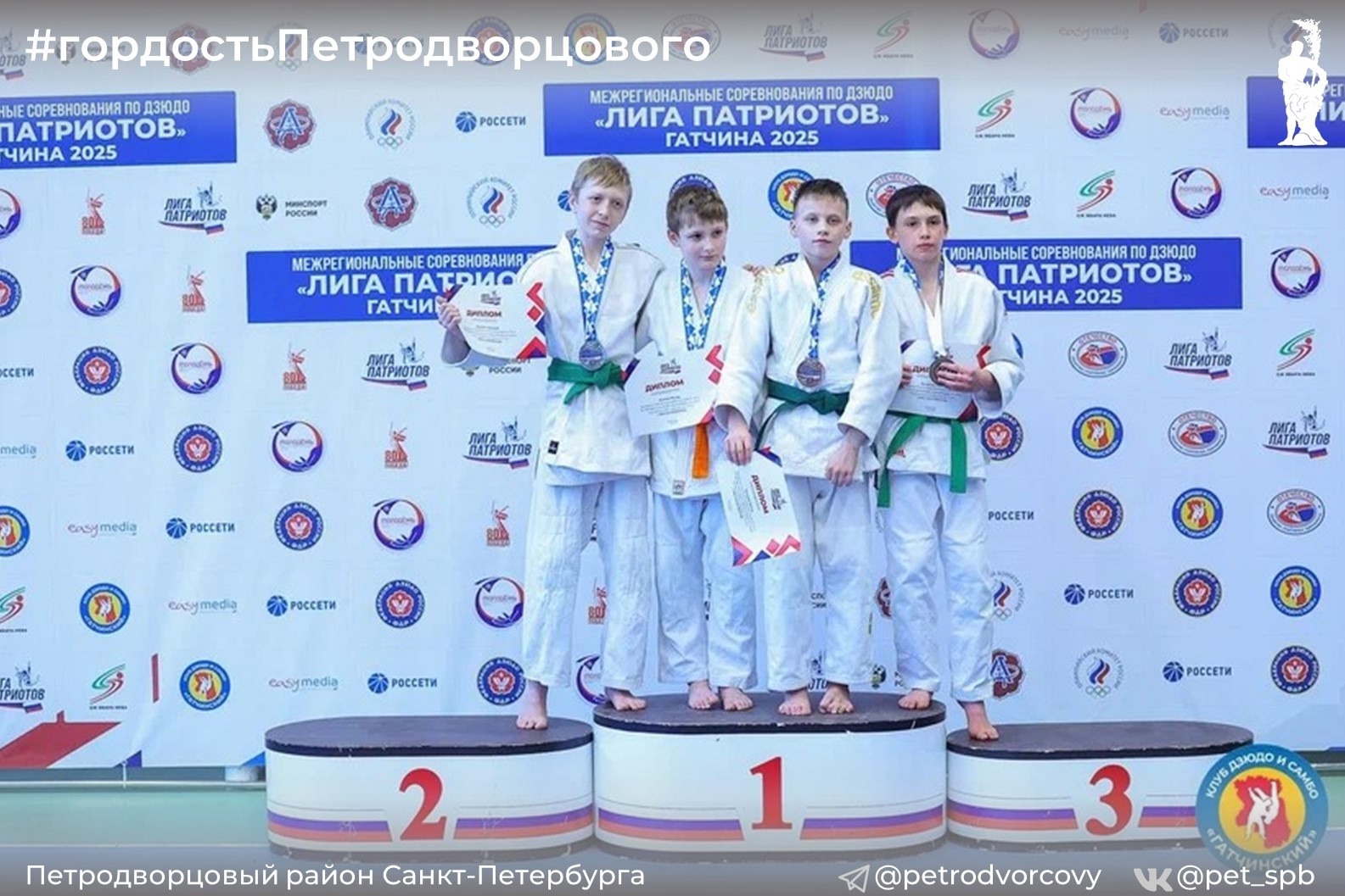 Японская борьба и русский дух встретились на татами в Гатчине. Здесь состоялись Межрегиональные соревнования по дзюдо среди юношей и девушек до 15 лет «Лига патриотов» – проект Федерации дзюдо России, посвящённый 80-летию Великой Победы и Году защитника Отечества.