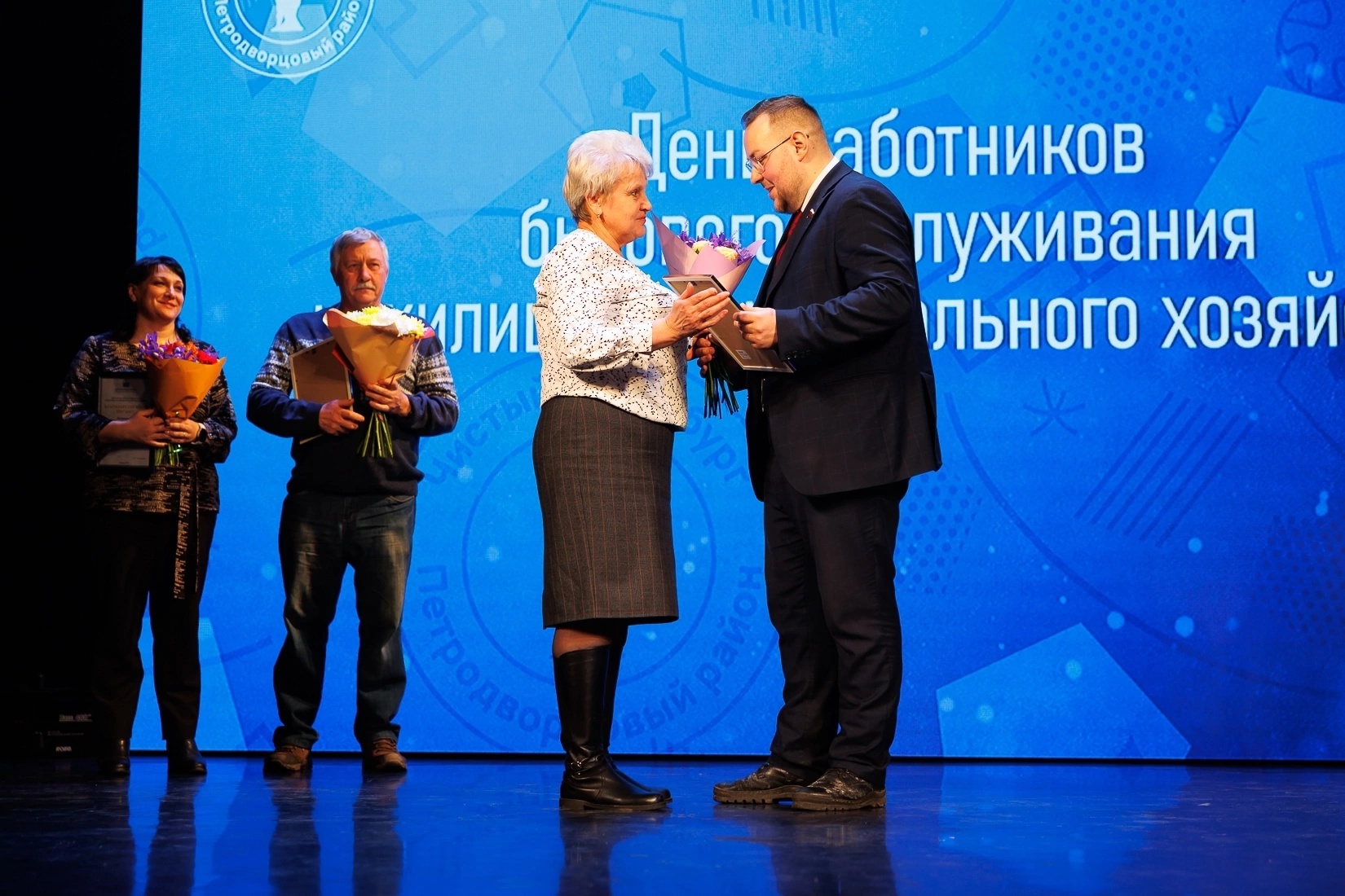 Заслуженные благодарности сотрудникам ЖКХ вручили от профильного комитета Правительства Петербурга, от депутата Государственной думы Александра Тетердинко, от администрации Петродворцового района, муниципальных образований Ломоносова, Петергофа и Стрельны, районного Жилищного агентства. Лично поздравил героев праздника депутат петербургского ЗакСа Михаил Барышников.