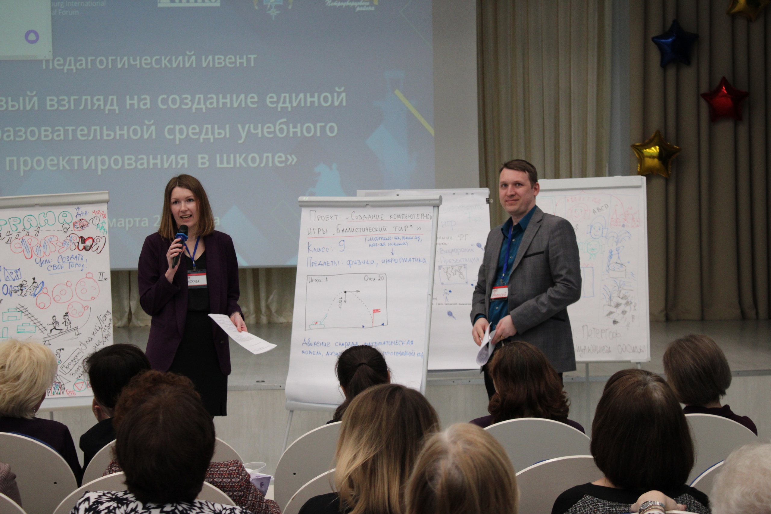 В рамках Петербургского международного образовательного форума в школе № 319 прошел Педагогический ИВЕНТ «Новый взгляд на создание единой образовательной среды учебного проектирования в школе». Перед участниками выступили с приветственным словом начальник отдела образования Санкт‑Петербурга Скворцова Татьяна Анатольевна; директор ИМЦ Петродворцового района Санкт‑Петербурга, Почетный работник общего образования РФ Мединская Марина Михайловна, директор Школы № 319; кандидат педагогических наук, Почетный работник общего образования РФ Шкорина Наталья Леонидовна.