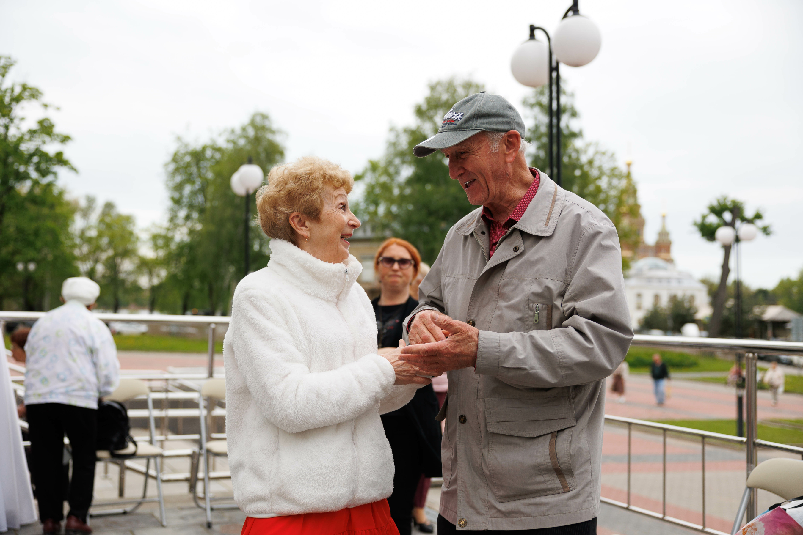 Первые городские танцевальные веранды открылись вчера в Петродворцовом районе. Площадки у Культурного центра «Каскад» и у Ломоносовского городского дома культуры собрали десятки участников «серебряного возраста» и не только – даже молодёжь не смогла пройти мимо. Наши веранды объединяют разные поколения!