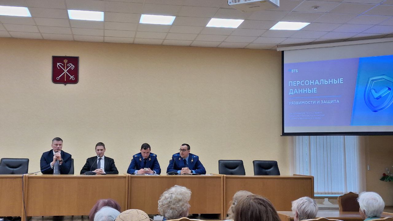 В администрации Петродворцового района состоялся семинар о защите персональных данных для жителей старшего поколения. Прокурор Петродворцового района Дмитрий Игоревич Кутыев вместе со своим помощником Тарасом Николаевичем Сулимой и представителем банка «ВТБ» рассказали слушателям о том, как защититься от мошенников, какие данные ни в коем случае нельзя называть по телефону.