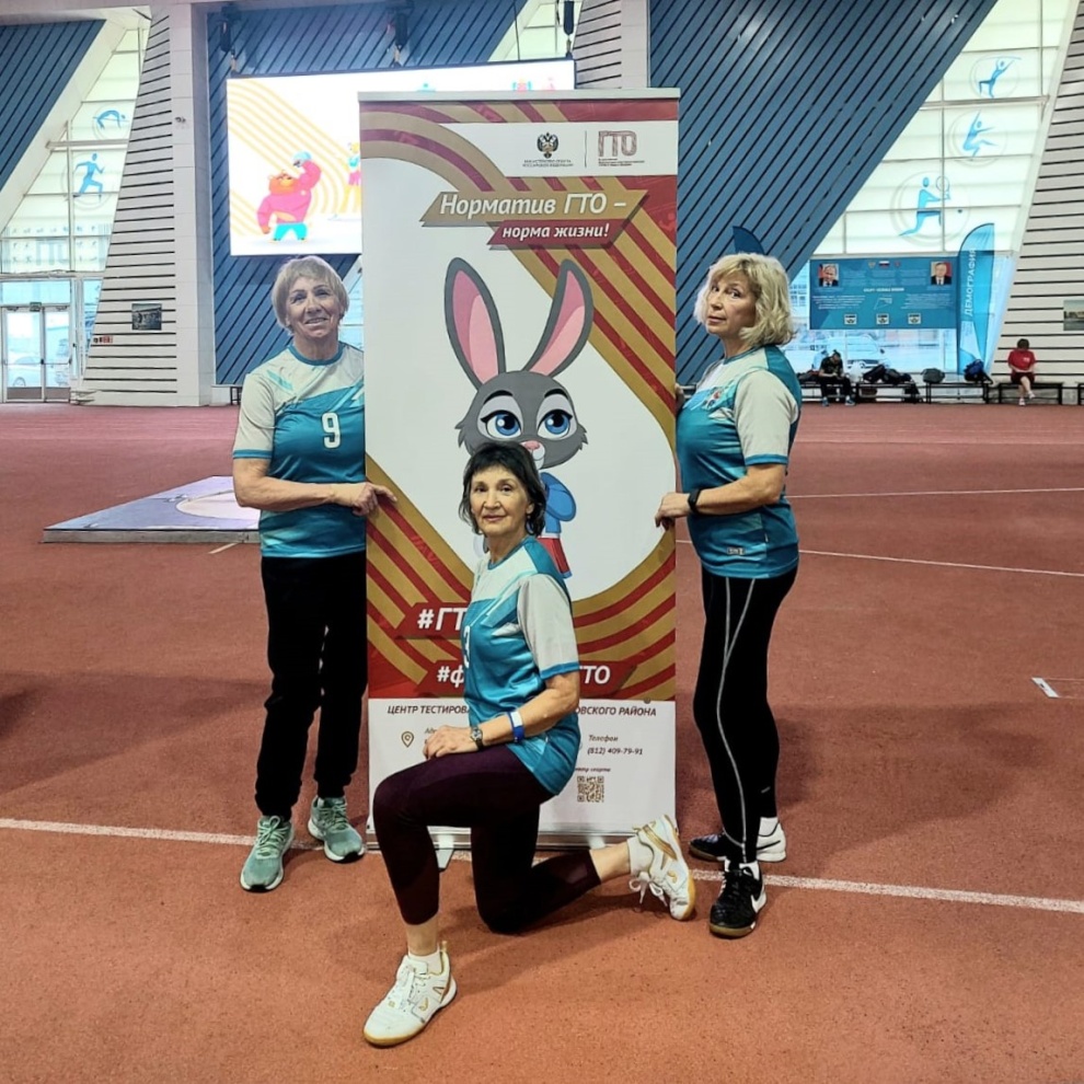 Сборная Петродворцового района одержала уверенную победу на очередном этапе соревнований среди петербургских пенсионеров «Серебряный возраст» – выполнение нормативов ВФСК ГТО. В программе было три вида испытаний: поднимание туловища из положения лёжа, наклон вперед на гимнастической скамье и отжимания.