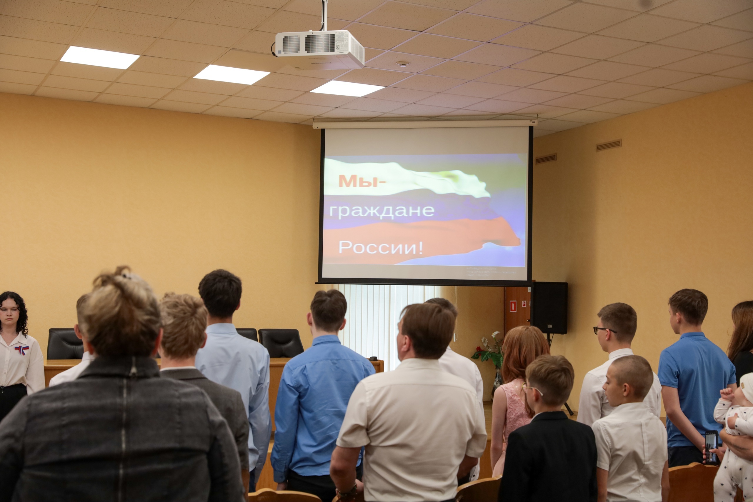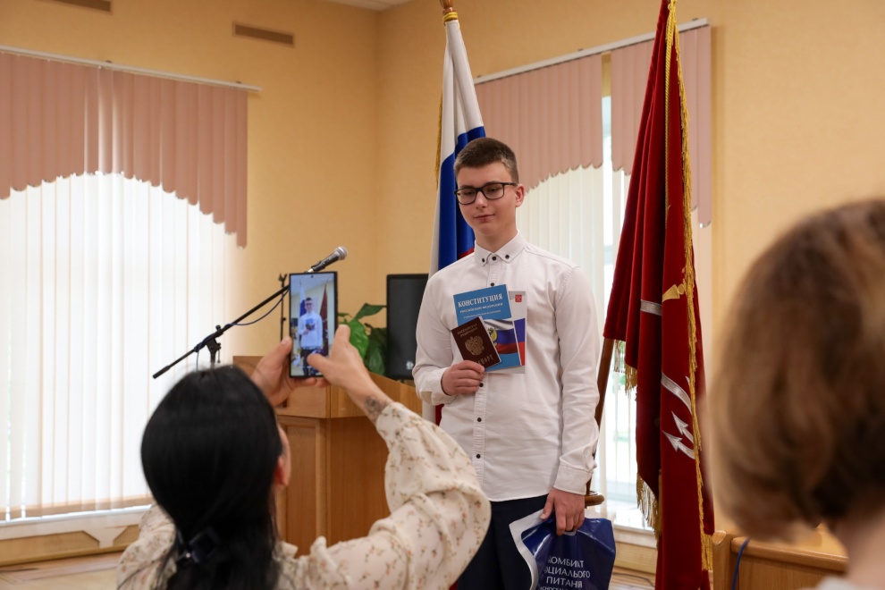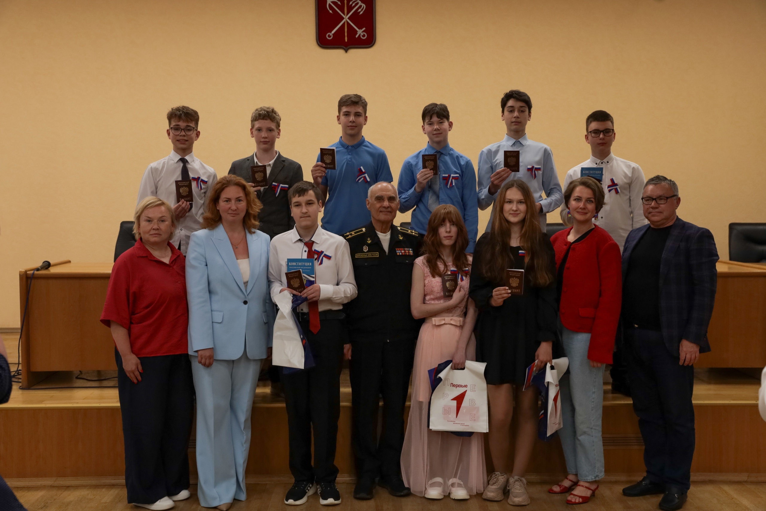 Главный документ юношам и девушкам вручили замглавы администрации Елена Щербина, начальник отдела молодёжной политики Дмитрий Песков и капитан 1 ранга, председатель комиссии по патриотическому воспитанию Петродворцового отделения Санкт‑Петербургской общественной организации ветеранов войны и труда, ветеран Вооруженных сил и правоохранительных органов РФ Николай Ельцов. К поздравлениям присоединились также специалист «Движения Первых» Мария Литвиненко и представитель Комбината социального питания Красносельского района Надежда Галухина.