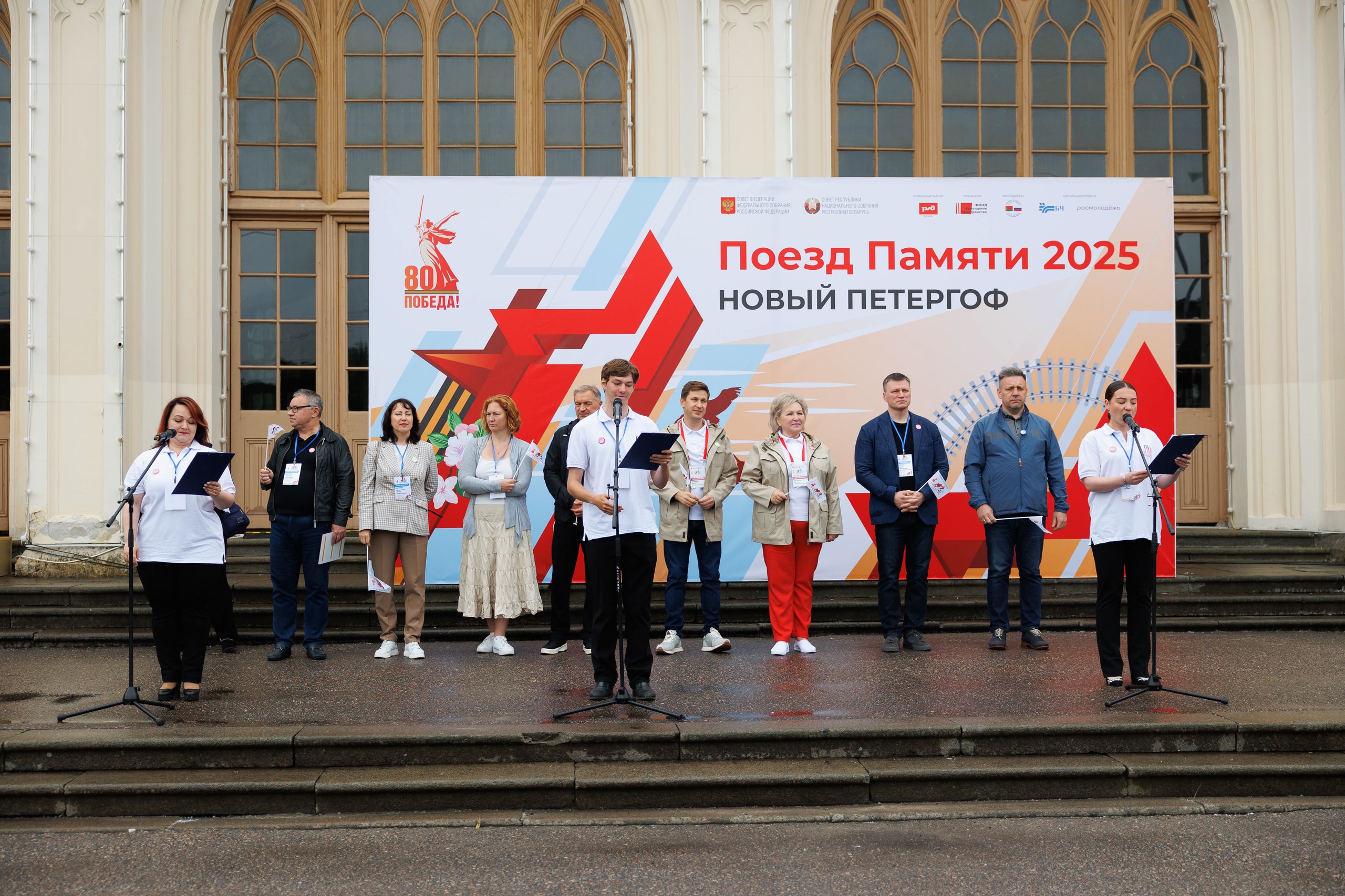 В Петродворцовом районе поприветствовали «Поезд Памяти». Это совместный российско-белорусский молодёжный проект, объединяющий школьников и студентов разных стран. В год 80-летия Великой Победы к нему присоединились представители всех республик бывшего СССР.