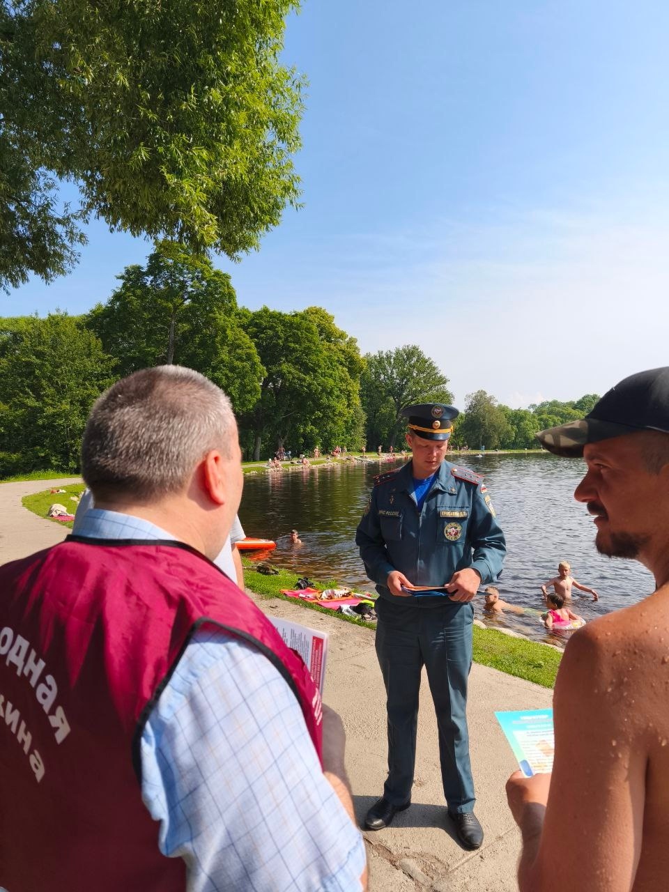 По поручению главы Петродворцового района Санкт‑Петербурга сотрудники администрации провели профилактический рейд на территориях, прилегающих к внутренним водоёмам района с целью предупреждения и пресечения купания граждан в неустановленных местах.