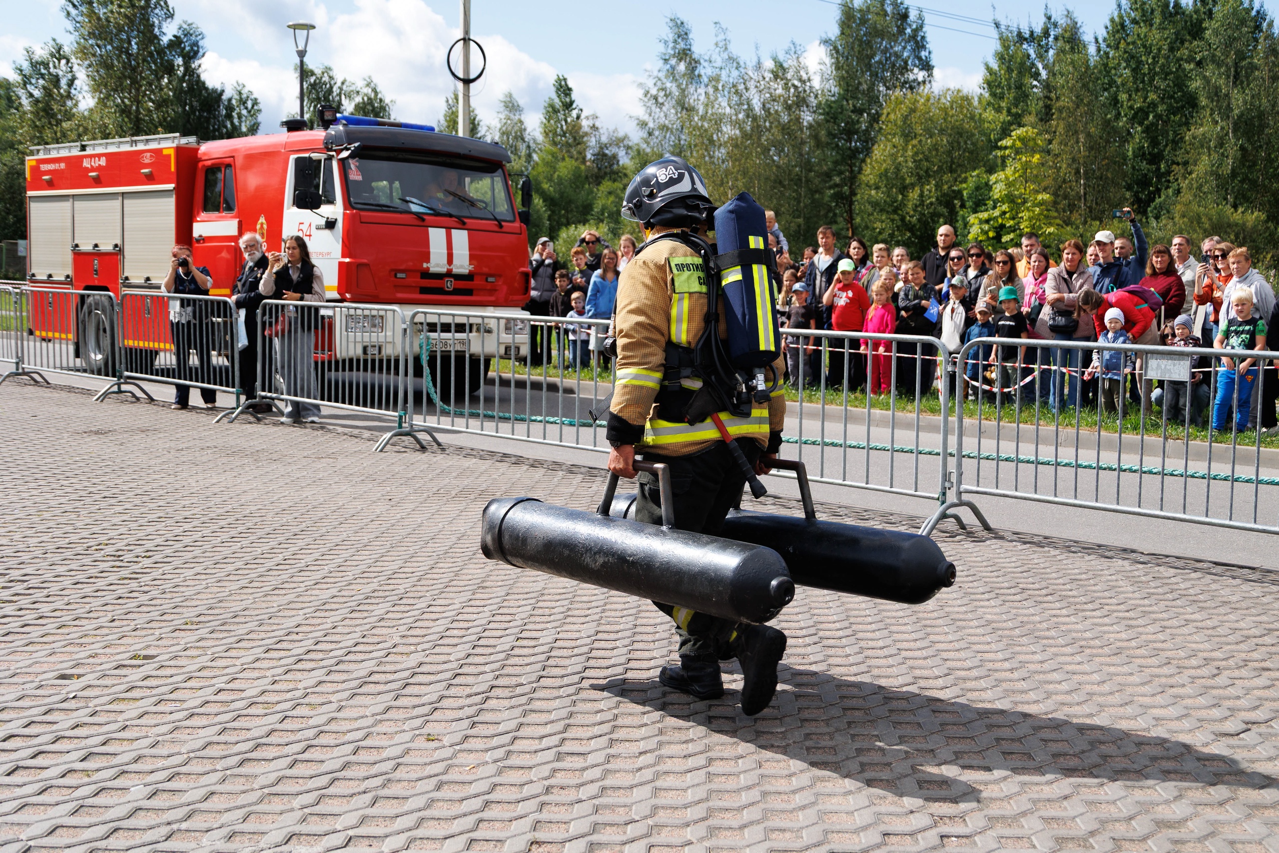 Празднование началось со зрелищных показательных выступлений спасателей. Огнеборцы занимают особое место в истории посёлка, где была создана первая в России добровольная пожарная дружина. Сегодня имя её основателя — князя Александра Дмитриевича Львова — носит стрельнинский пожарно-спасательный отряд №54.