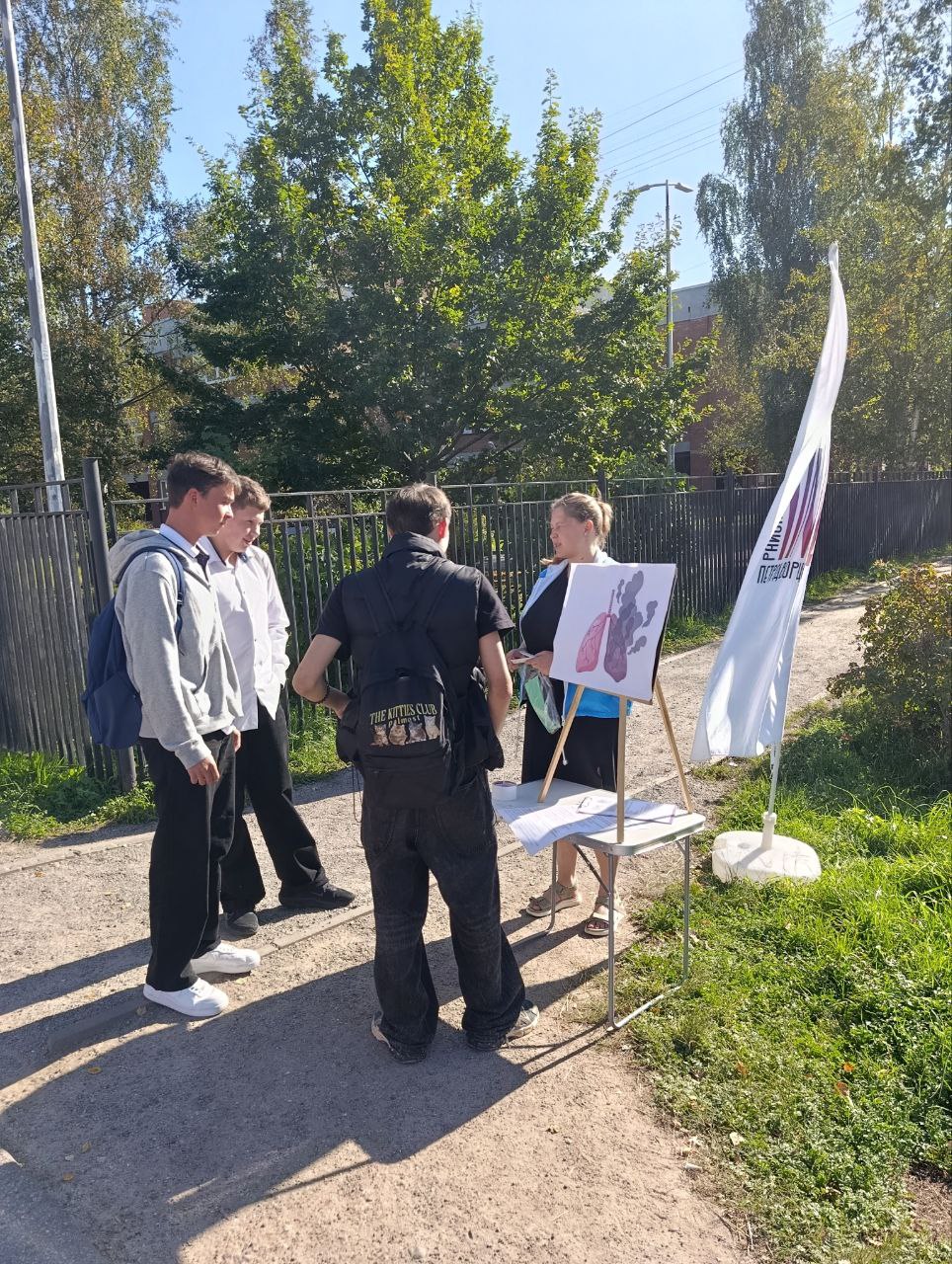 Акцию «Здоровое дыхание» волонтёры провели на улице Шахматова в Петергофе. Её целью было привлечение внимания общественности к здоровому образу жизни и профилактика табакокурения и других устройств (вейпов, электронных сигарет). Участниками стали обучающиеся ближайших общеобразовательных школ и молодёжь Петродворцового района. Подростки активно включились в обсуждение. Разобрали как вред для здоровья, так и правовые нормы. В качестве «закрепления» материала ребятам предложили написать на специальном постере, иллюстрирующем вред табака, почему не стоит приобретать такую вредную привычку, и мотивационную фразу, которая, на их взгляд, могла бы помочь распрощаться с ней.