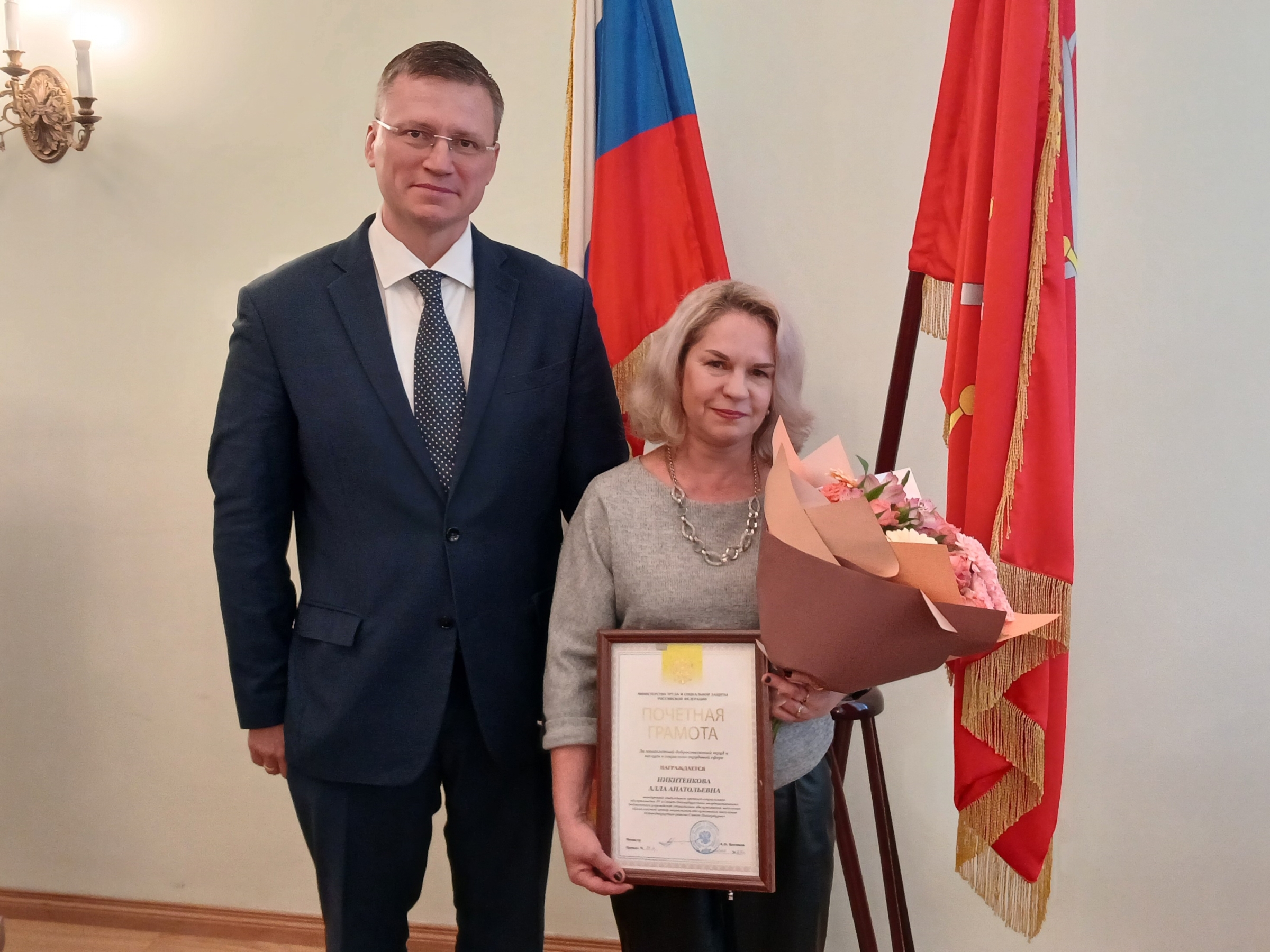 На аппаратном совещании глава района Александр Якушев вручил Алле Никитенковой Почётную грамоту Министерства труда и социальной защиты Российской Федерации за многолетний добросовестный труд и заслуги в социально-трудовой сфере.